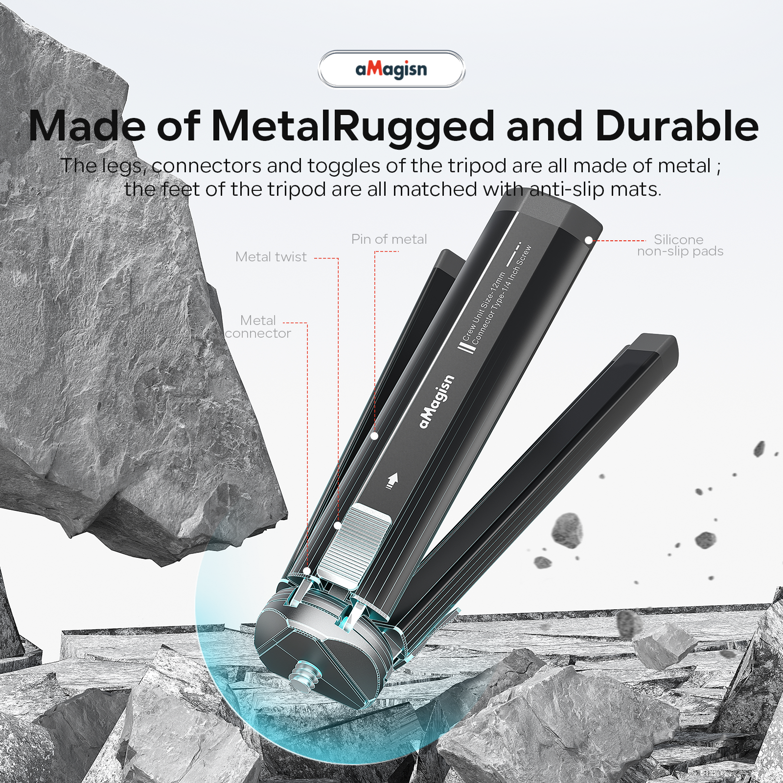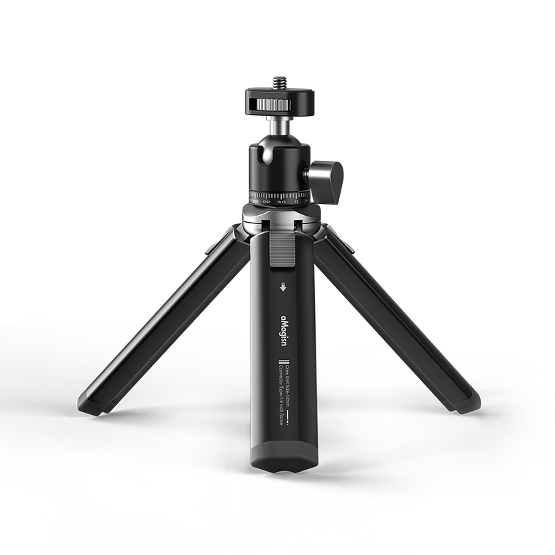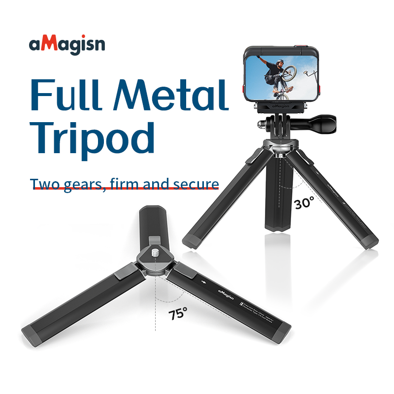 The metal tripod can be used with selfie stick/head.
