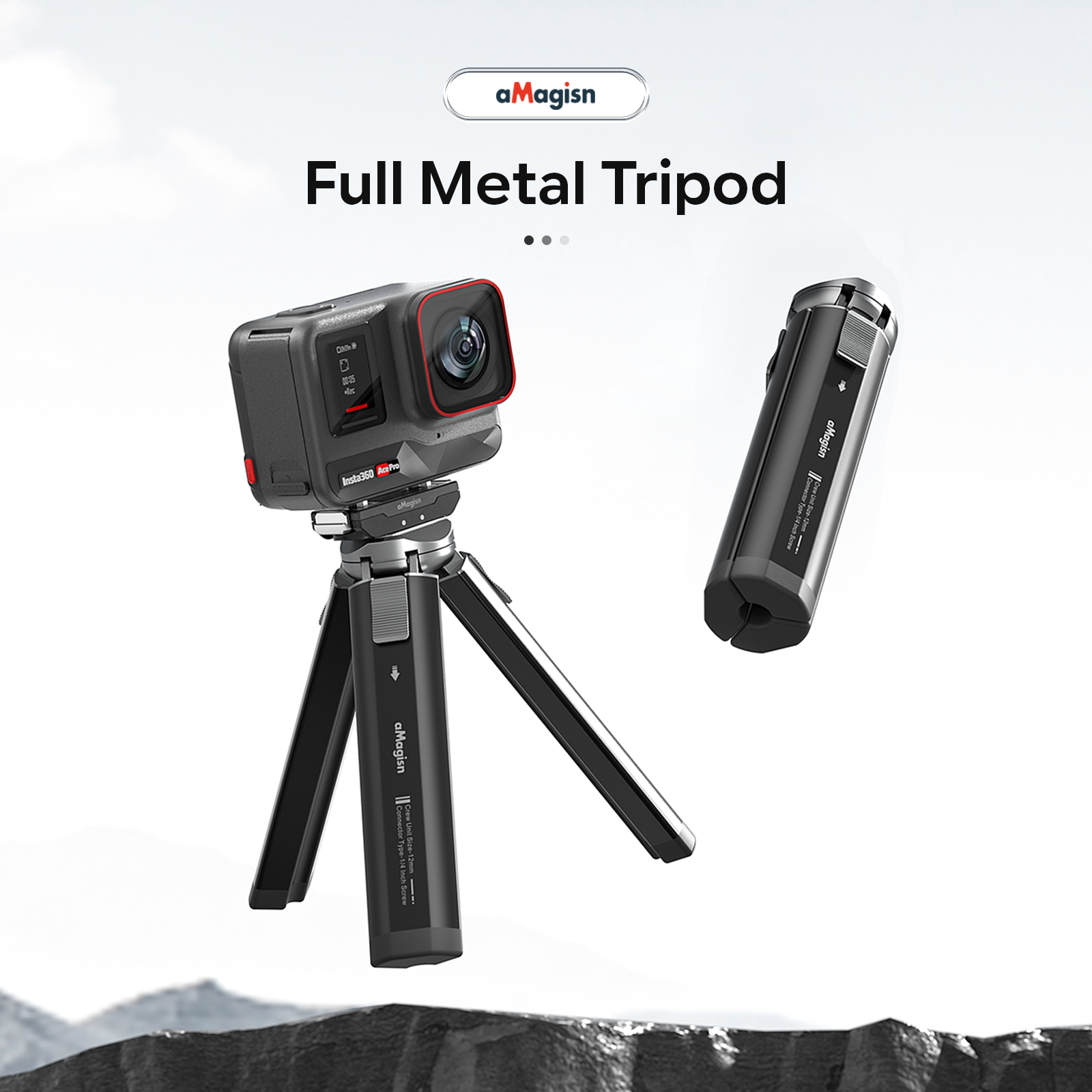 For Insta360 Ace Pro /Action 4 Metal Tripod 1/4" Screw Connector Sports Camera Accessories