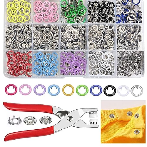 800PCS Metal Snaps Buttons with Fastener Pliers Press Tool Kit Perfect for DIY Crafts Clothes Hats and Sewing, Snap Button Fasteners Kit for Clothing Sewing(200 Sets,10 Colors,9,5mm)