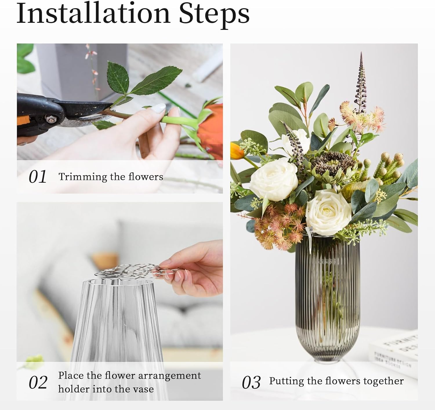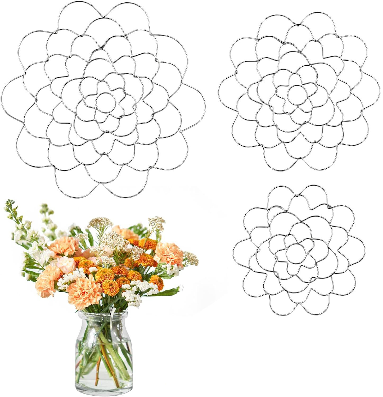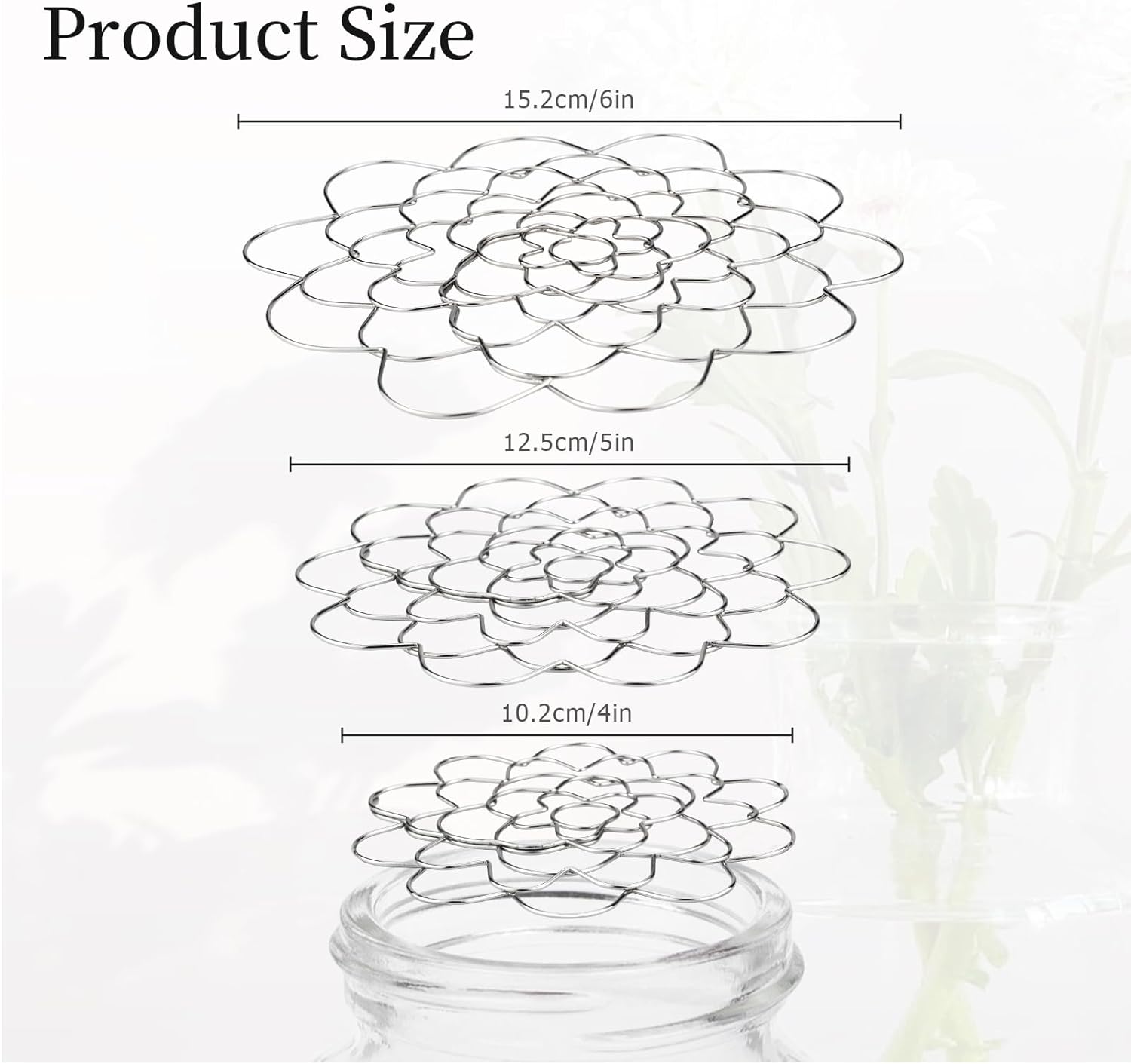 - Size Information: This metal flower arrangement lid has a diameter of 4inch/10.16cm,5inch/12.7cm,6inch/15.24cm, which is easy to use and fits most regular vases. Its compact and lightweight design ensures ease of handling and use. In addition, the lid's proper size makes it easy to store when not in use, providing you with maximum convenience and saving valuable space.