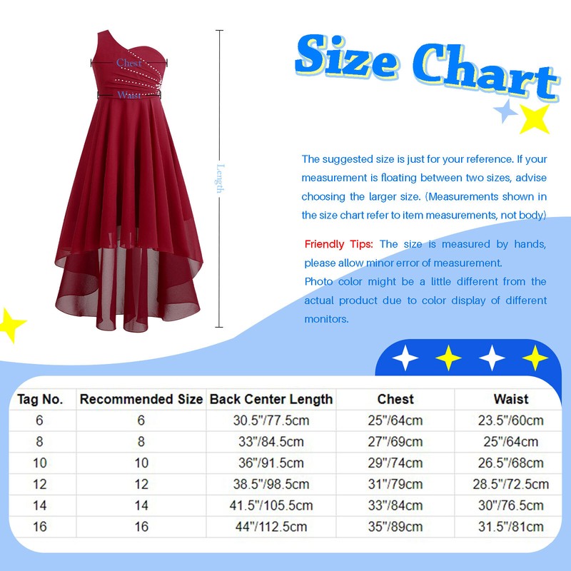 Suitable for dancing, performance, flower girl, festivals, birthday, party, evening, wedding and other occasion. Size Chart: The suggested size is just for your reference. If your measurement is floating between two sizes, advise choosing the larger size. (Measurements shown in the size chart refer to item measurements, not body)