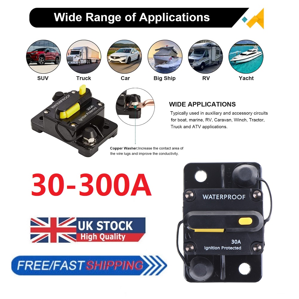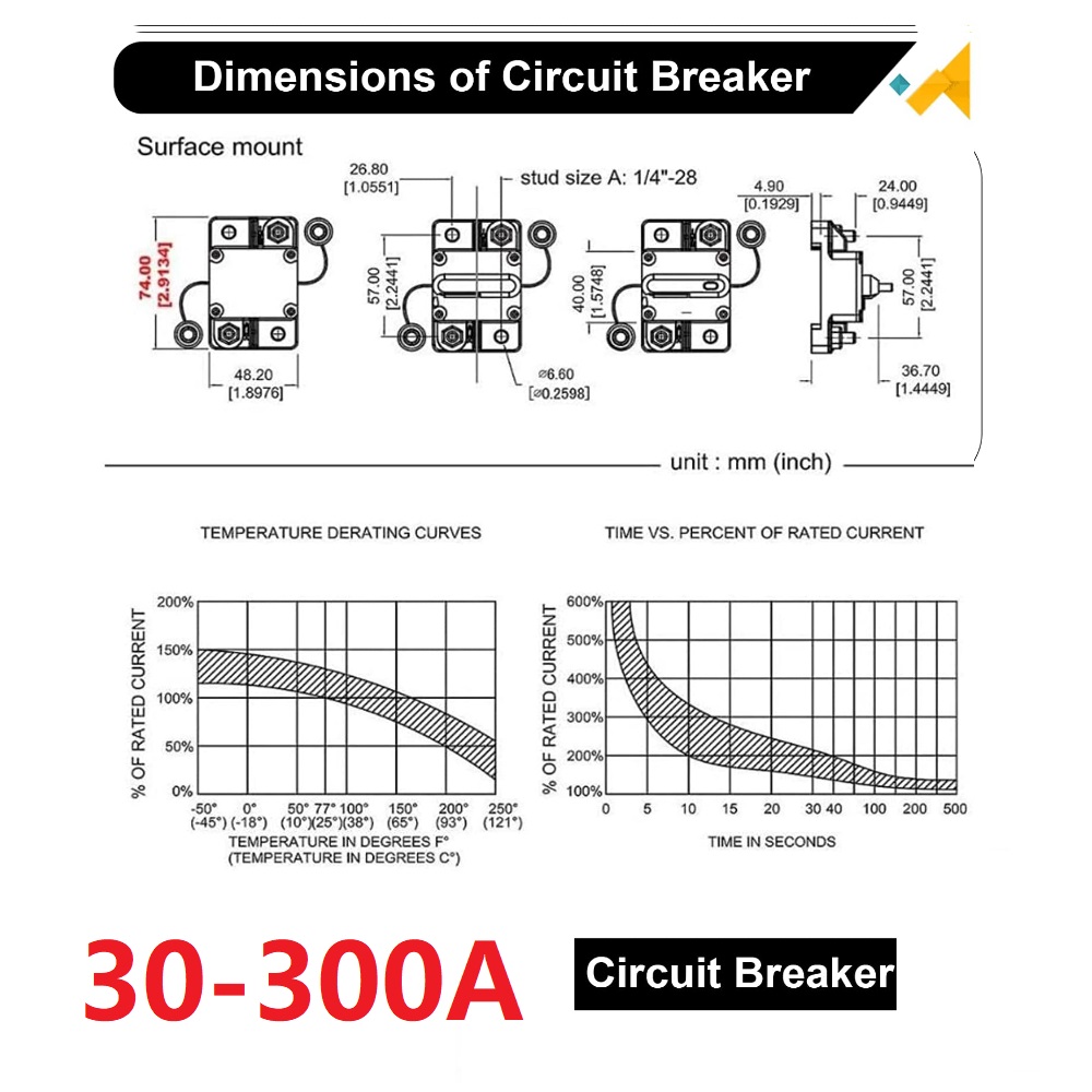 Circuit breaker with manual reset switch, suitable for auxiliary DC electrical system, automatic detection, protection in the case of current overload or short circuit, usually used in auxiliary and auxiliary circuits of trucks, buses, RVs and marine systems, protective rubber The cap can prevent unnecessary short circuits, and the manual trip switch can quickly disconnect the circuit in an emergency.