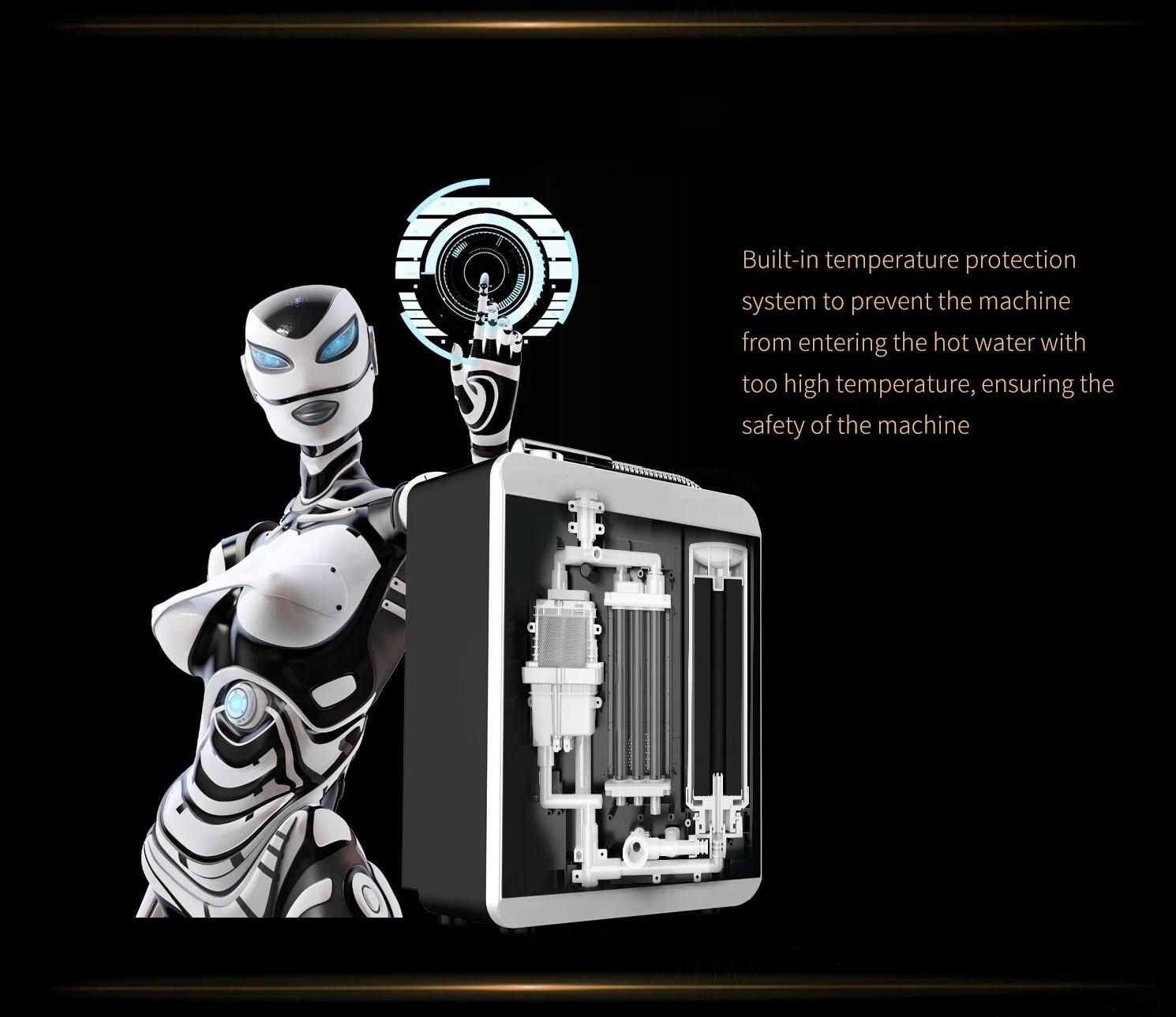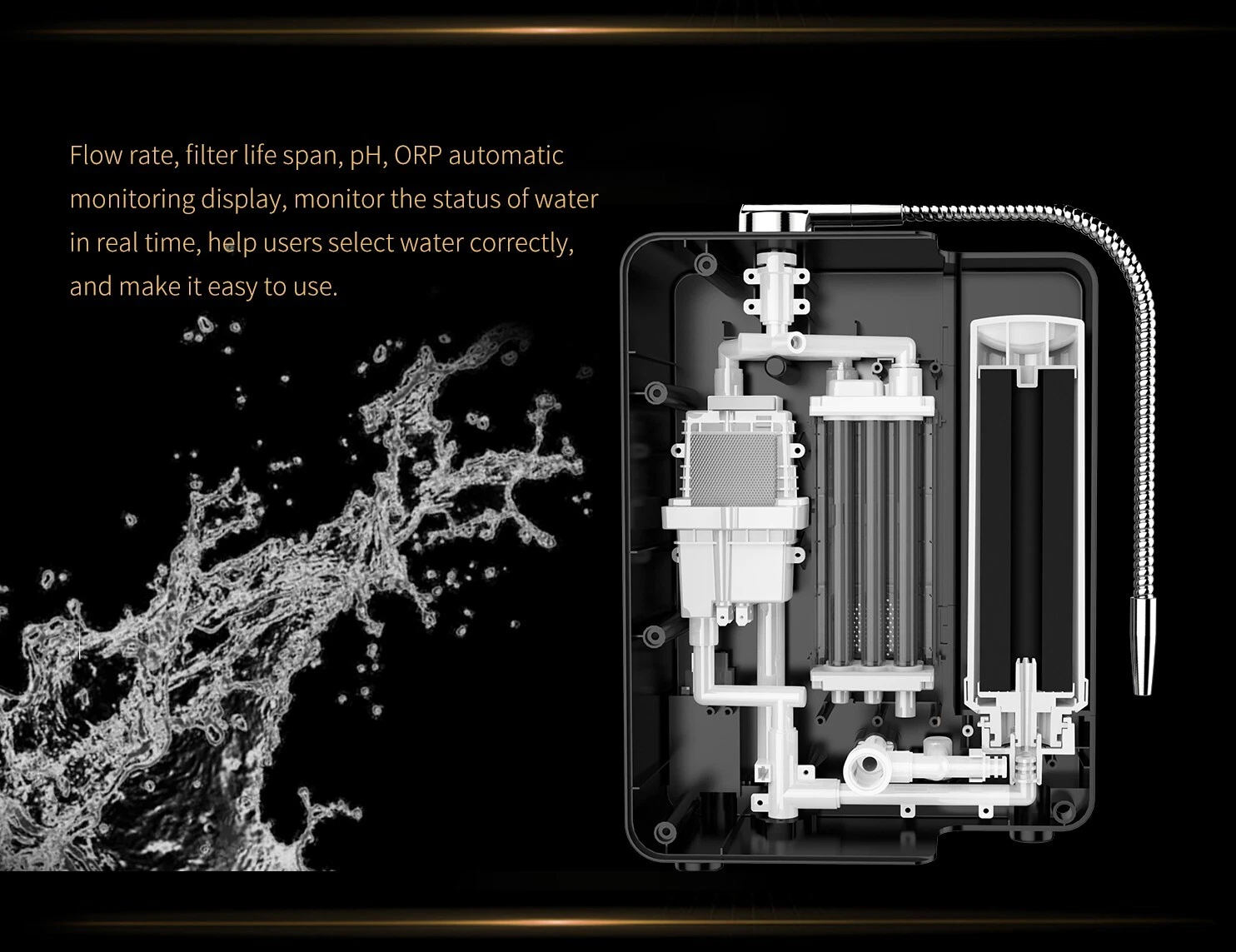 1. The LCD displays pH and ORP, flow rate, temperature, filters' usage life, helping the user to select suitable water.