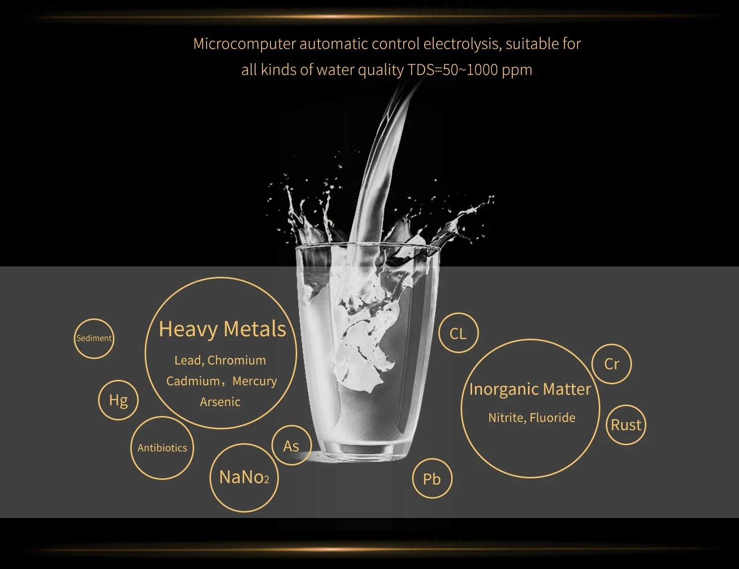 3. The electrolysis with the Microcomputer automatic control system can work perfectly in the water TDS from 50 to 1200PPM