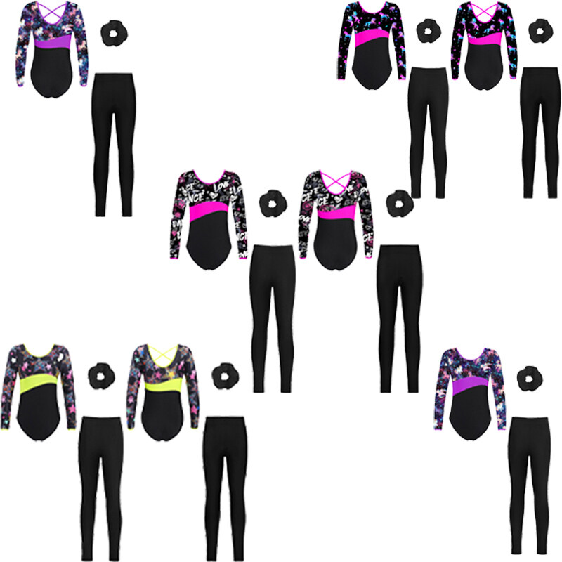 Matching with elastic waistband leggings and hair tie. Fashionable srt for your girl.