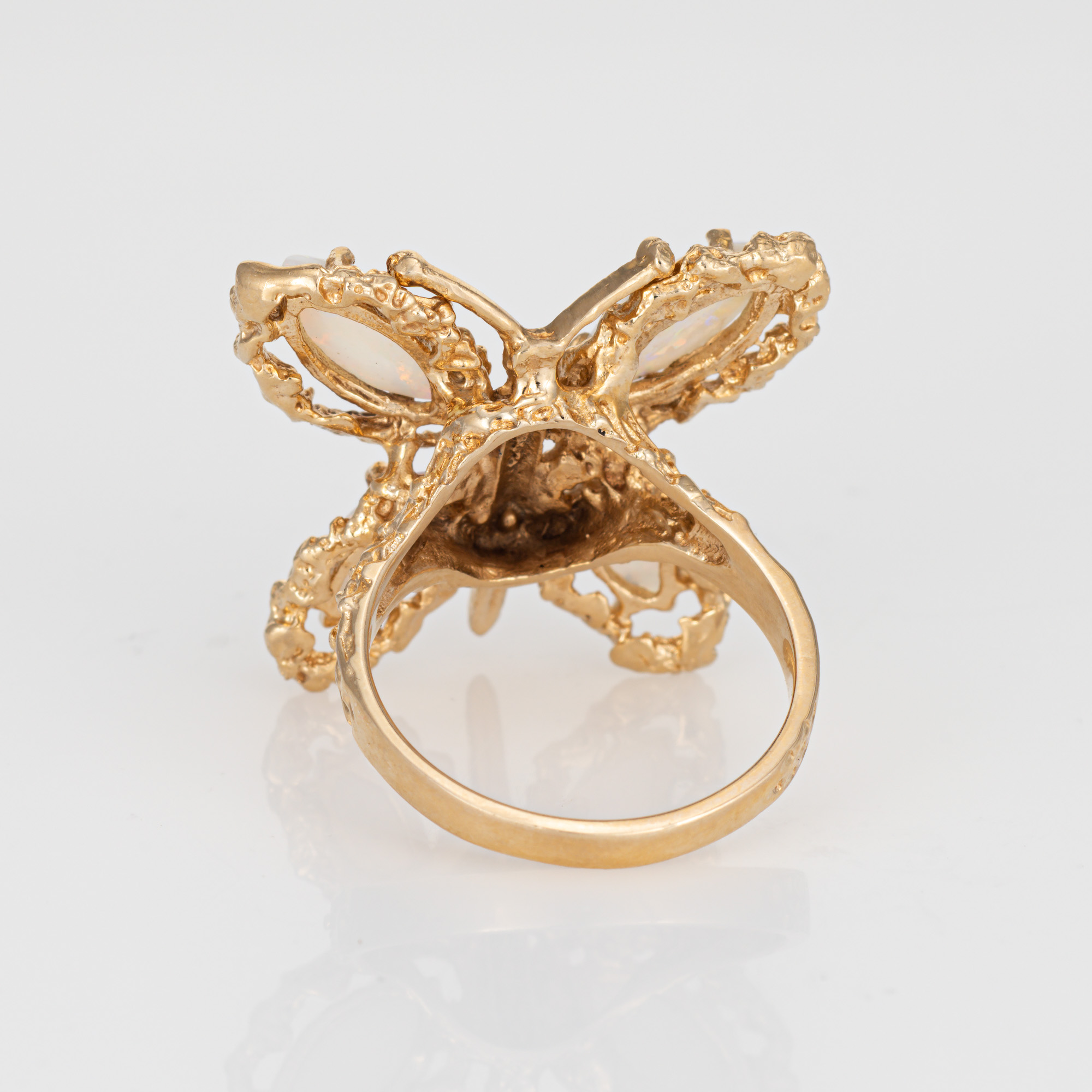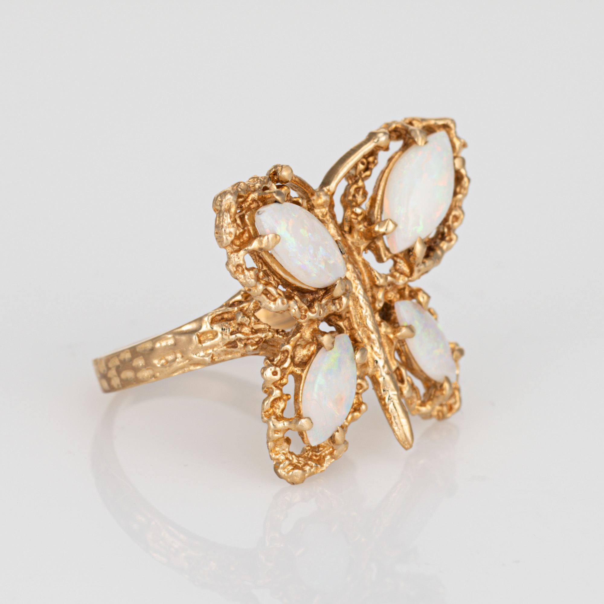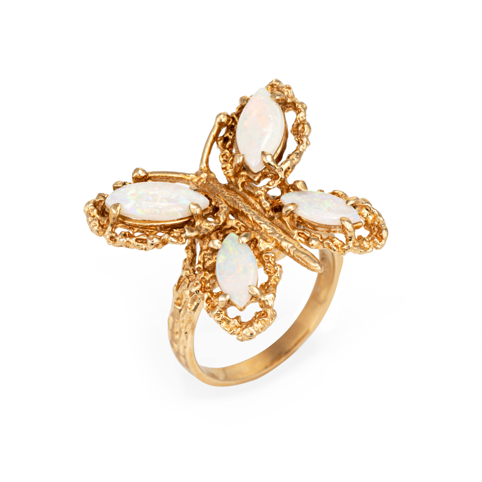 70s Vintage Opal Butterfly Ring 14k Yellow Gold Sz 6.75 Cocktail Estate Jewelry