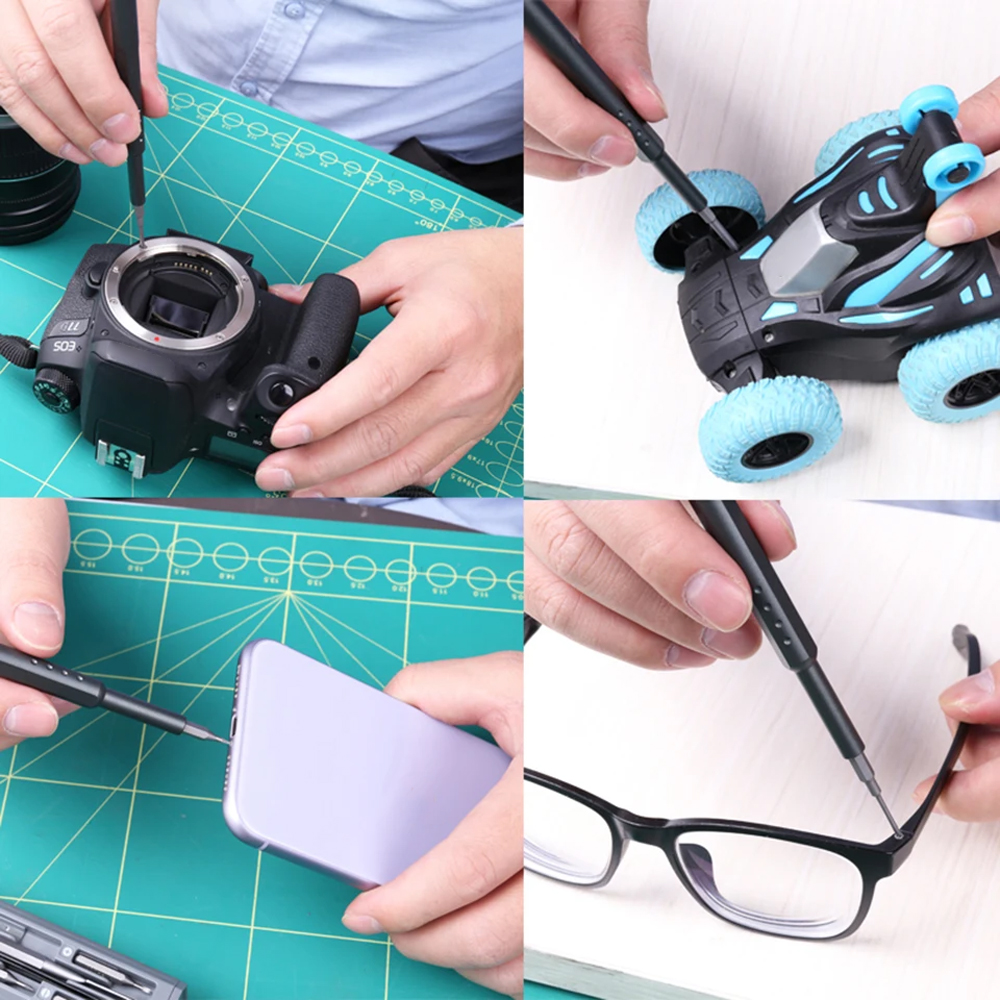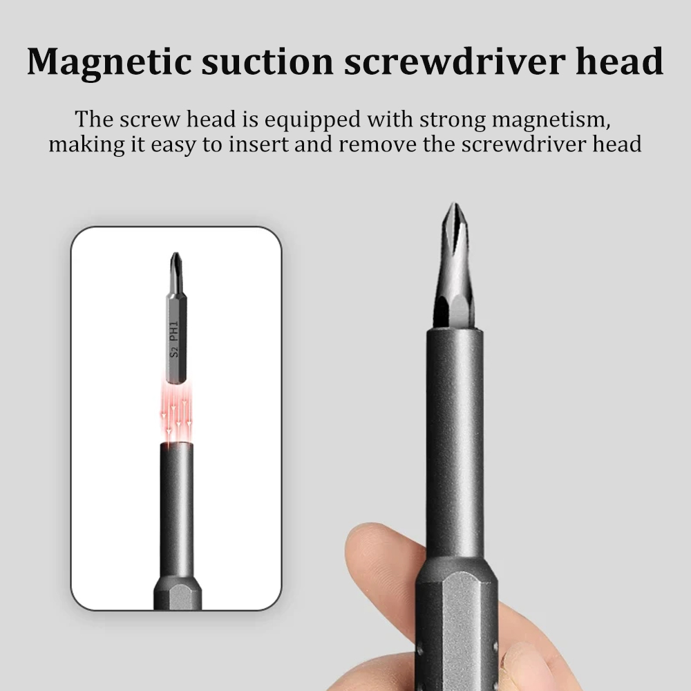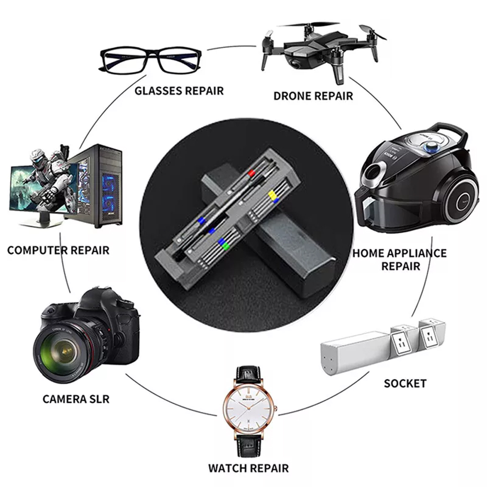 2. High-quality material, the professional mini screwdriver undergoes strict quality control and high-precision manufacturing, and is made of high-quality S2 steel. S2 material is stronger and more durable than CR-V alloy. The drill bit is magnetic, the parts won't fall off easily, and it's easy to work with. Complete screwdrivers with hardened tips will last for years, while interchangeable precision screwdriver bits come in even more varieties.