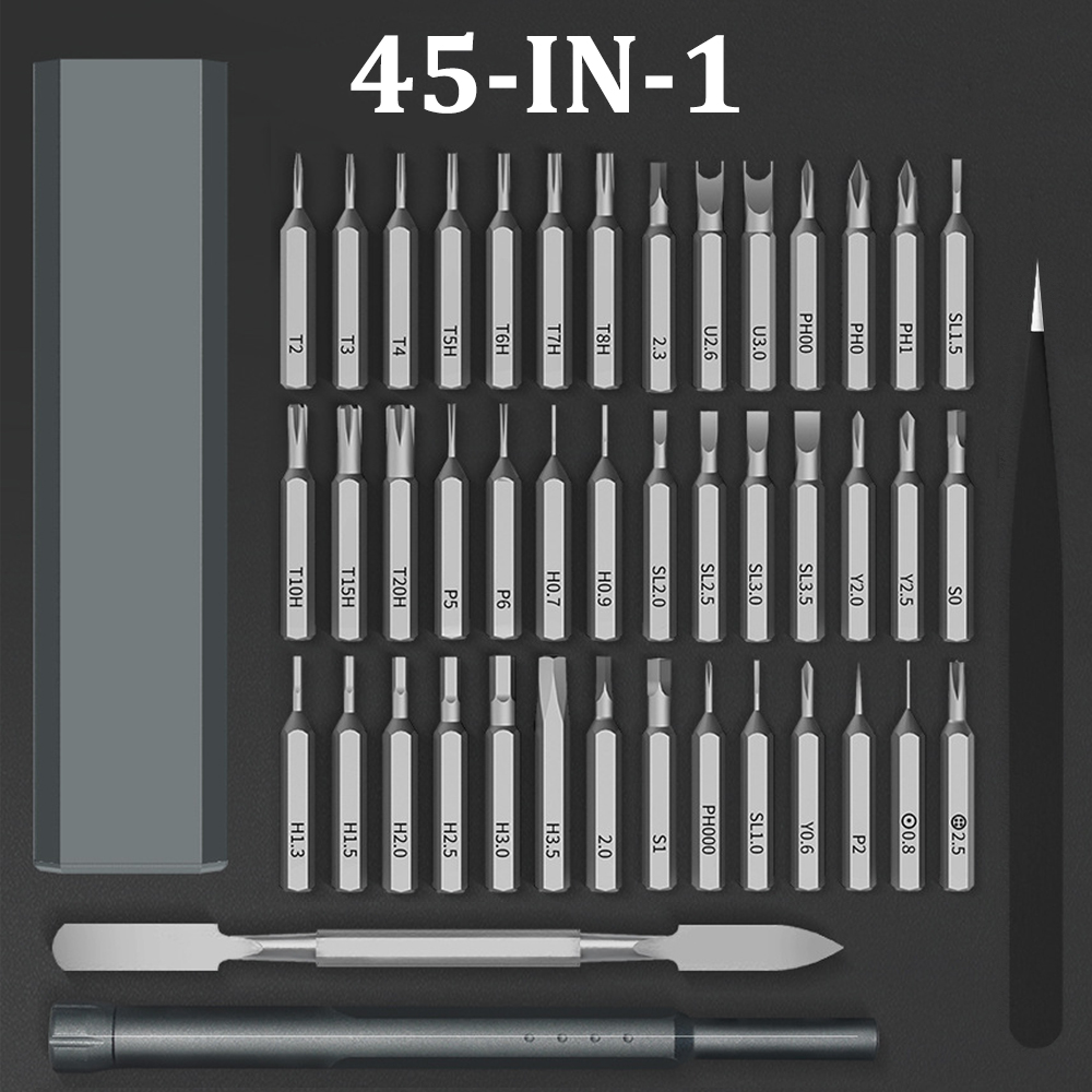 1. The Torx screwdriver set includes 42 screwdriver heads + accessories (phillips, flat head, hexagonal, inner hexagonal, triangular, triangular, pentaagonal, wrench, square and cross, pry bar). Perfect repair tool for electronics, laptops, cell phones, computers, glasses, smartphones, toys, PCs, watches, game consoles, cameras, radios, Macs and most handheld devices.