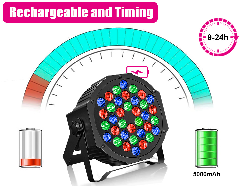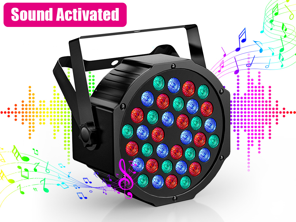 4. Color-changing LED stage lights. Equipped with 36 super-bright and soft tricolor RGB LEDs, it can provide vivid colors for the space, all in white at full brightness.
