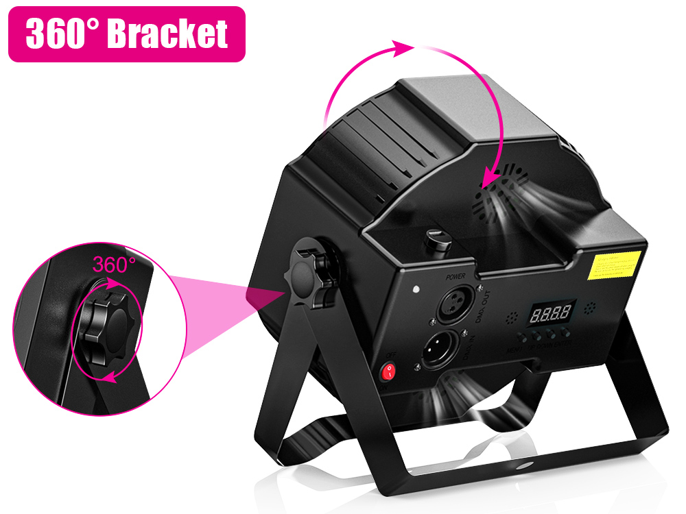 2. Easy to install. Double handle design, free to adjust the angle, you can hang the stage light on the T-bar light bracket or any bracket, you can also put it on the floor, the angle can be adjusted and fixed by the manual adjustment screw.