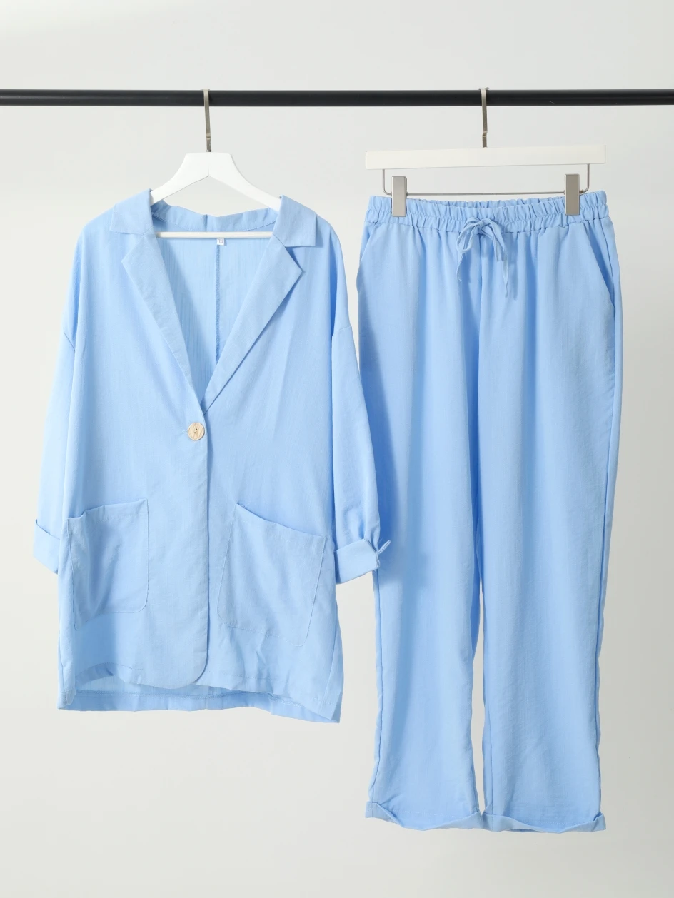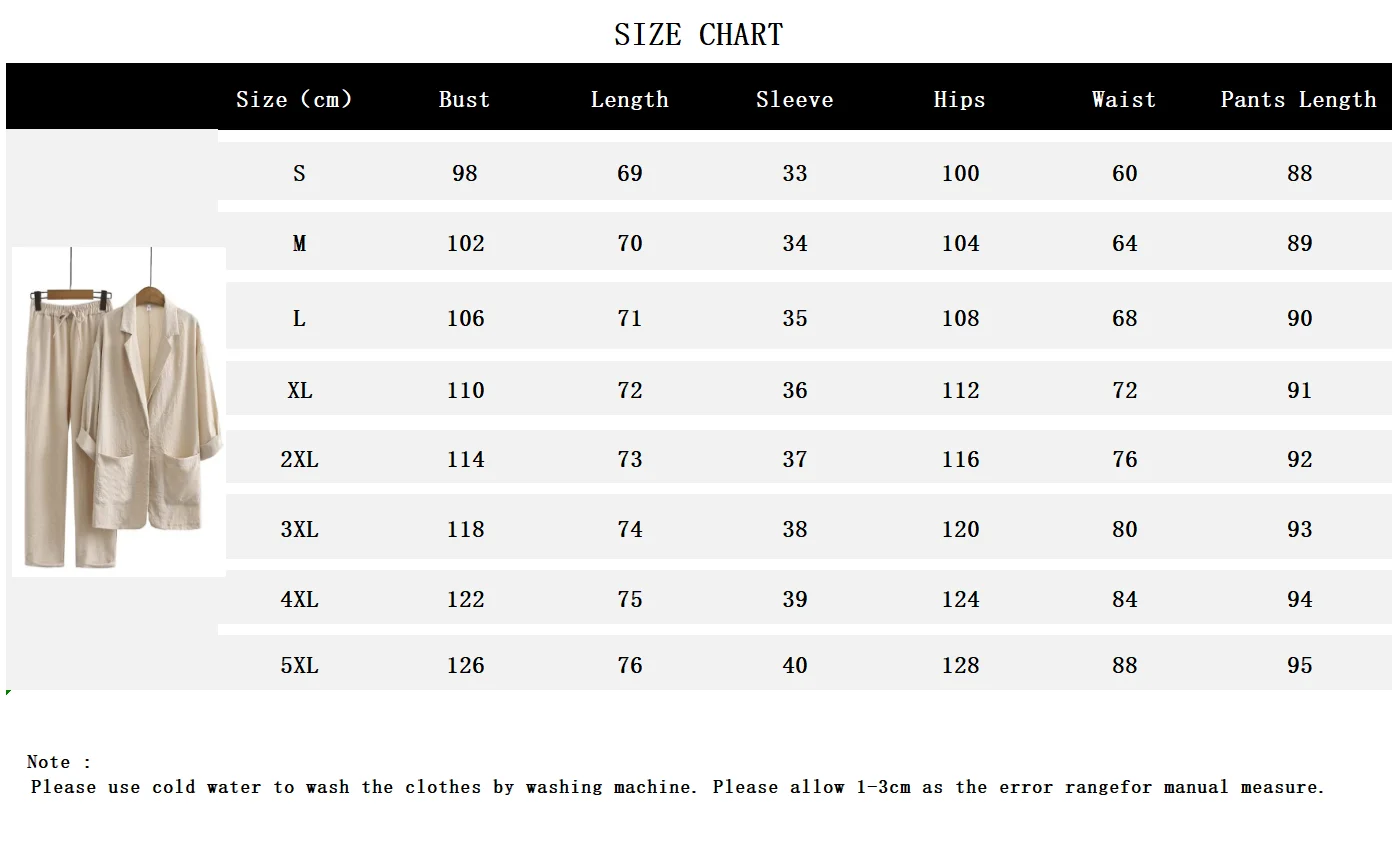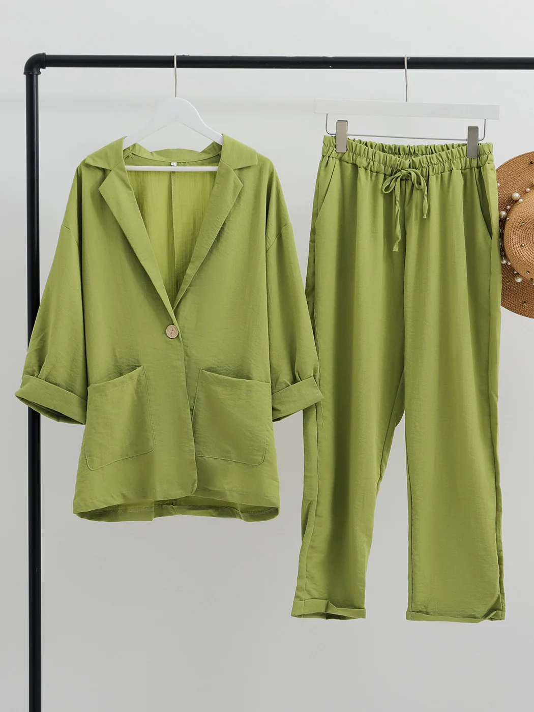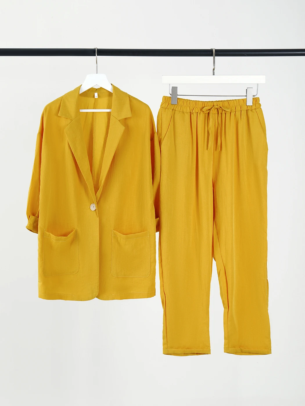 Summer Casual Cotton Linen Suit Top + Pants Two-piece Set Cotton Linen for Women