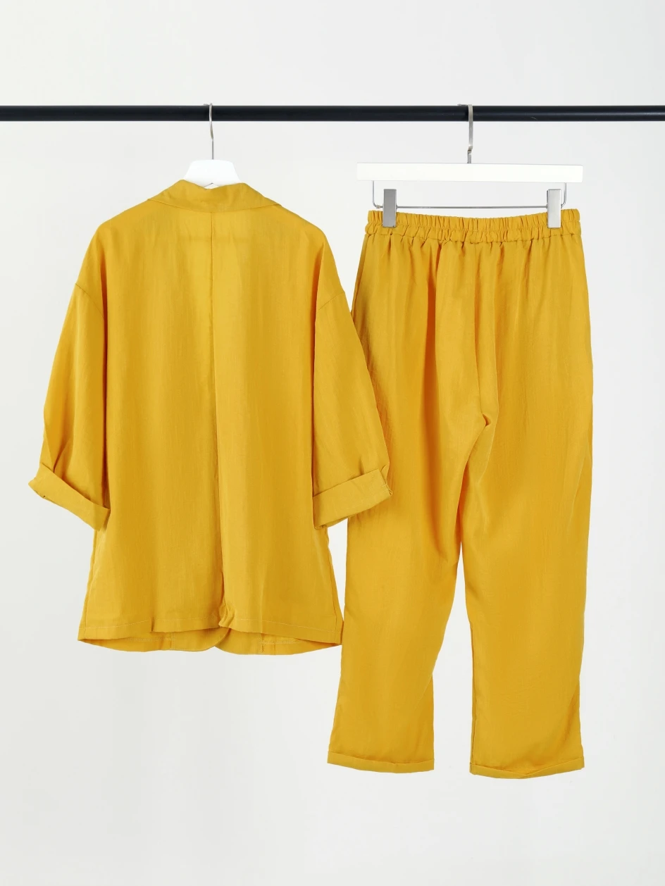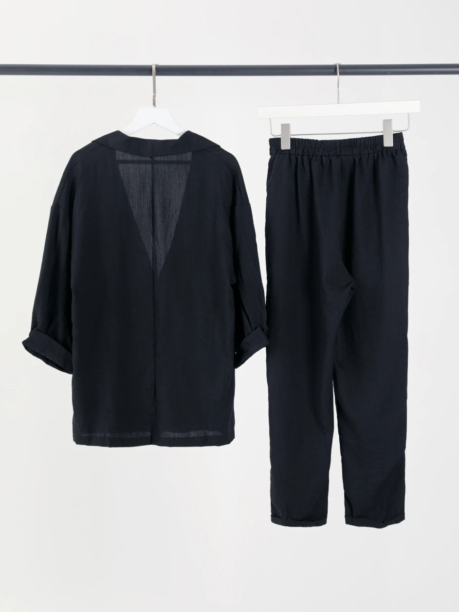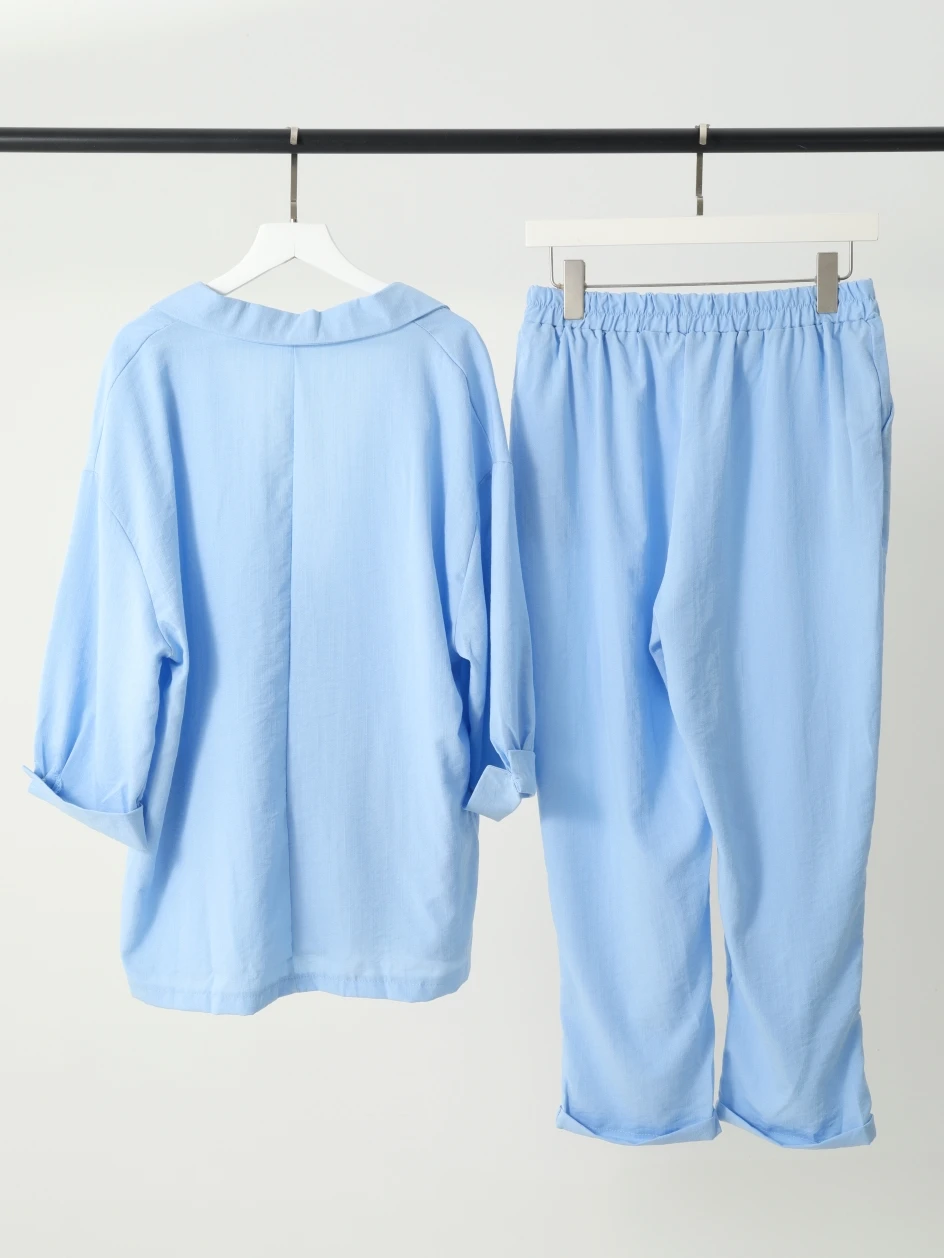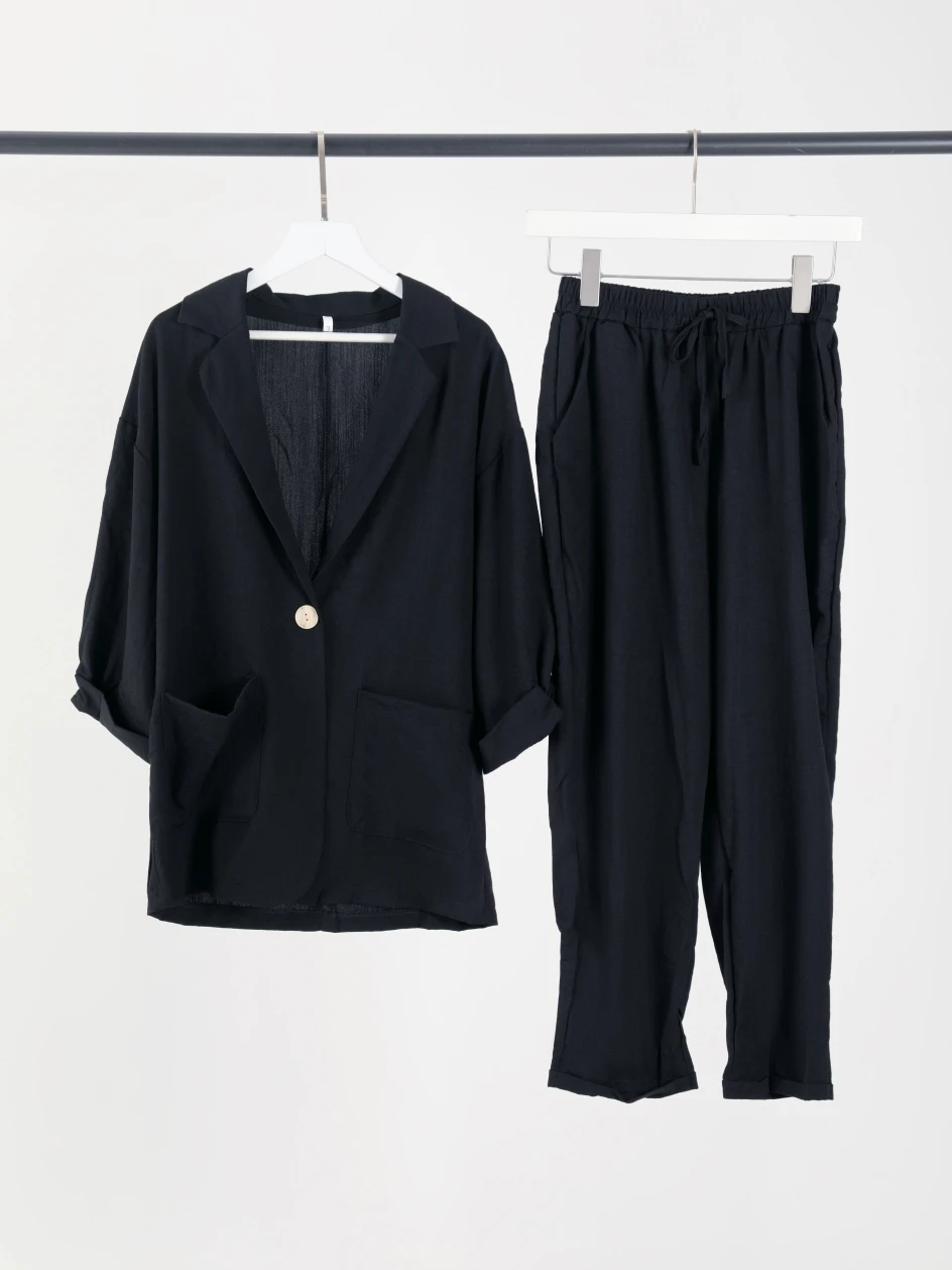 Summer Casual Cotton Linen Suit Top + Pants Two-piece Set Cotton Linen for Women