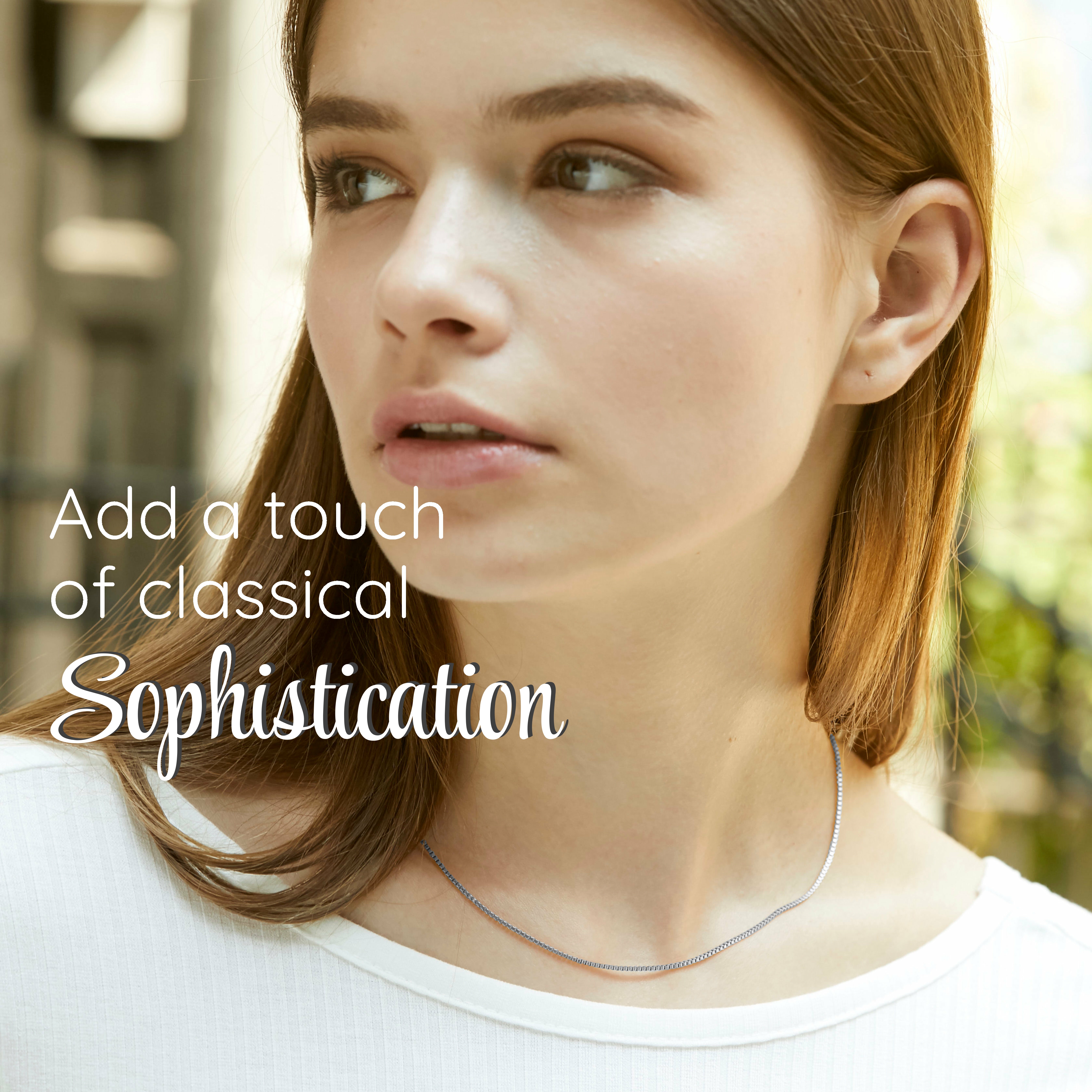 Elevate your ensemble with the delicate charm of the KISPER 24k White Gold 1.2mm Box Chain Necklace. Crafted with finesse, this thin and dainty necklace is fashioned from white gold-plated stainless steel, offering a timeless elegance suitable for both women and men. Its slender 1.2mm width adds a subtle touch of sophistication to any attire, while the lobster clasp ensures secure closure and easy wear. Perfectly sized at 14 inches, this necklace sits gracefully around the neck, making it ideal for layering or wearing alone. Packaged with care, this jewelry piece is an exquisite addition to your collection or a thoughtful gift for loved ones.