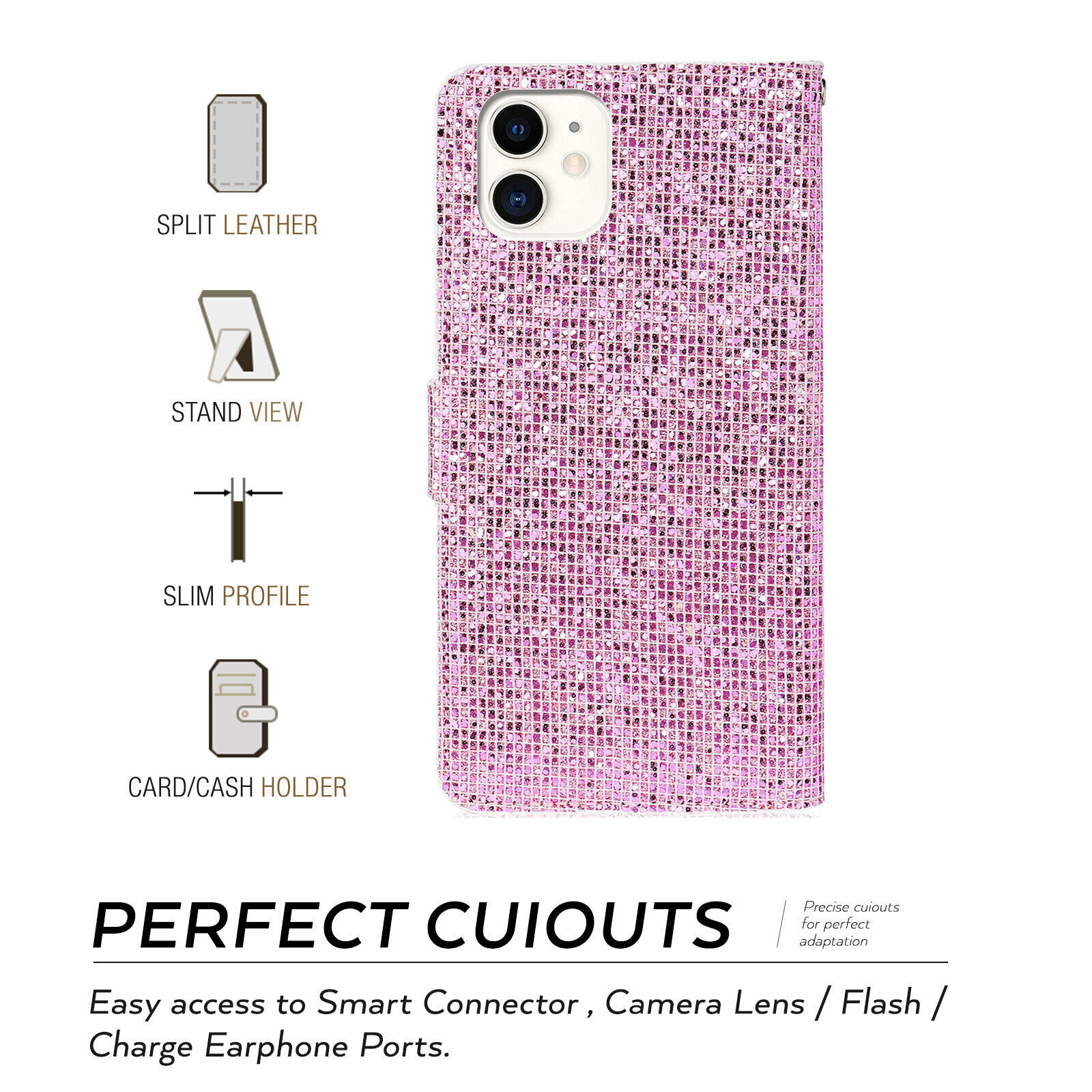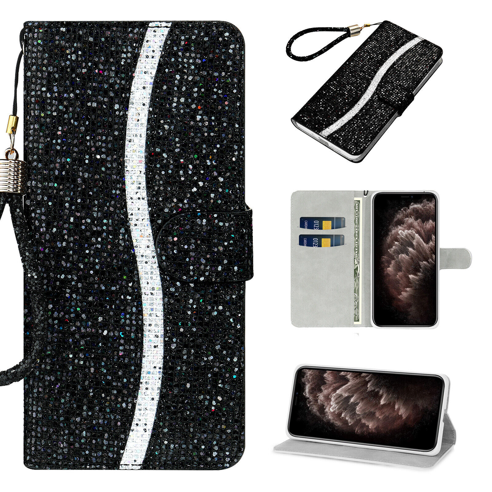 Girl Bling Leather Flip Wallet Case For iPhone 16 Pro Max/15/14/13/12/11/XS Max