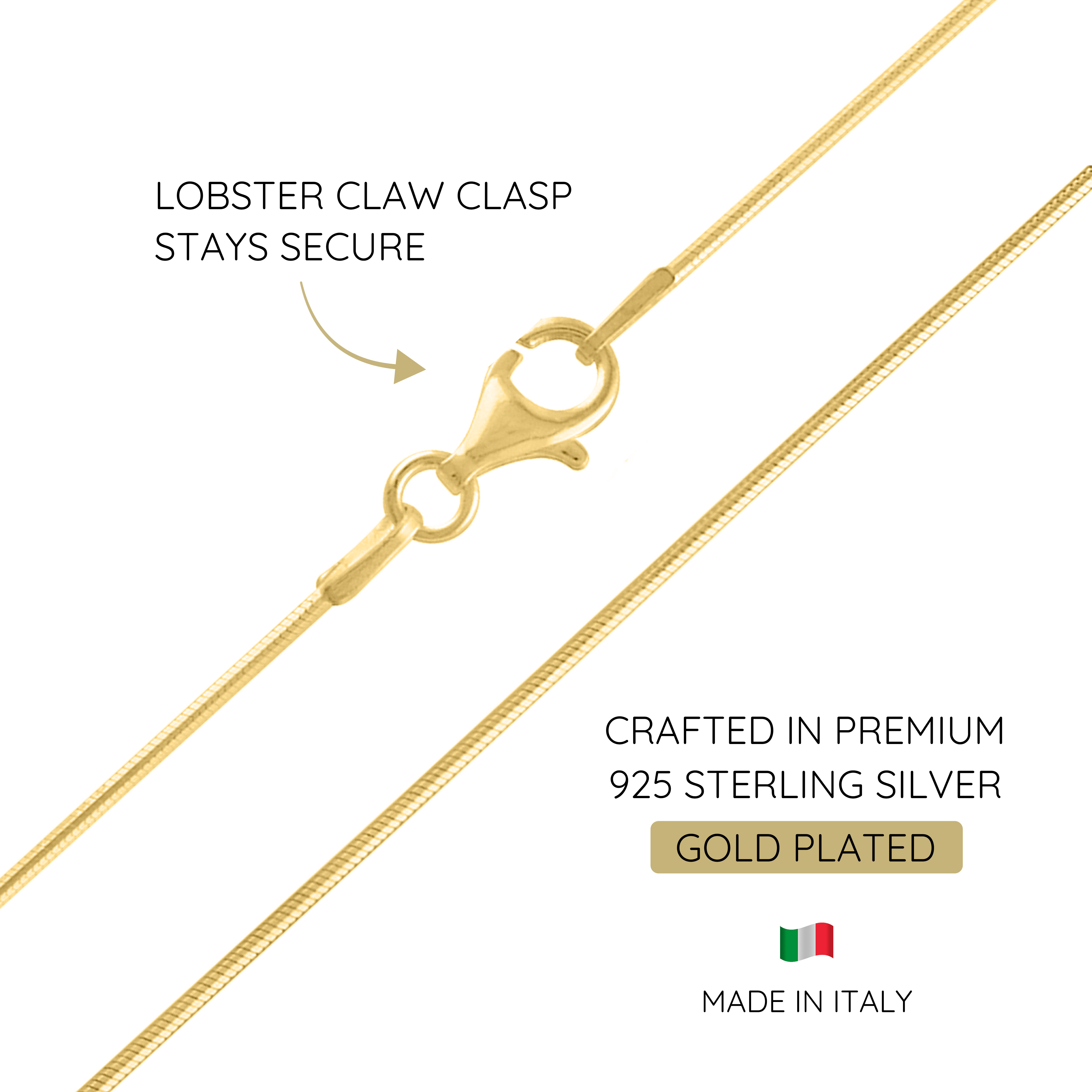 Introducing the KISPER Gold 8 Sided Snake Chain Necklace, a stunning and versatile piece of jewelry crafted for both women and men. Made in Italy, this thin and dainty necklace boasts a sparkling gold-plated 925 sterling silver construction, ensuring a high-end look and feel. With a length of 30 inches, it's designed to catch the eye and elevate any outfit with its understated elegance. The 0.8mm thickness adds to its versatility, allowing you to wear it alone or with a cherished pendant. Crafted with quality in mind, this necklace is hypoallergenic, nickel, and lead-free, with a tarnish-resistant rhodium plating for long-lasting wear. Available in various lengths from 16 inches to 30 inches, you can choose the perfect size to suit your style, whether for layering or solo wear. Backed by KISPER's lifetime guarantee, this necklace promises to bring joy and sophistication year after year.