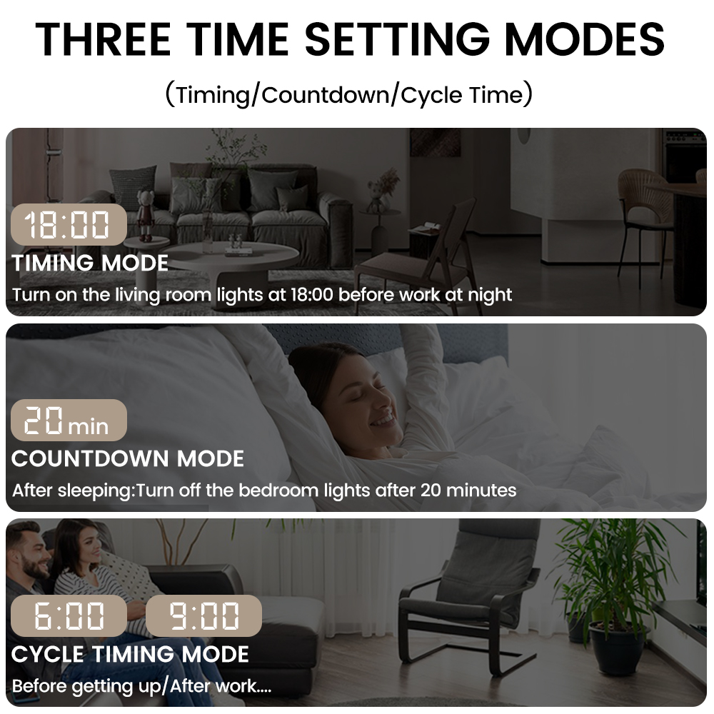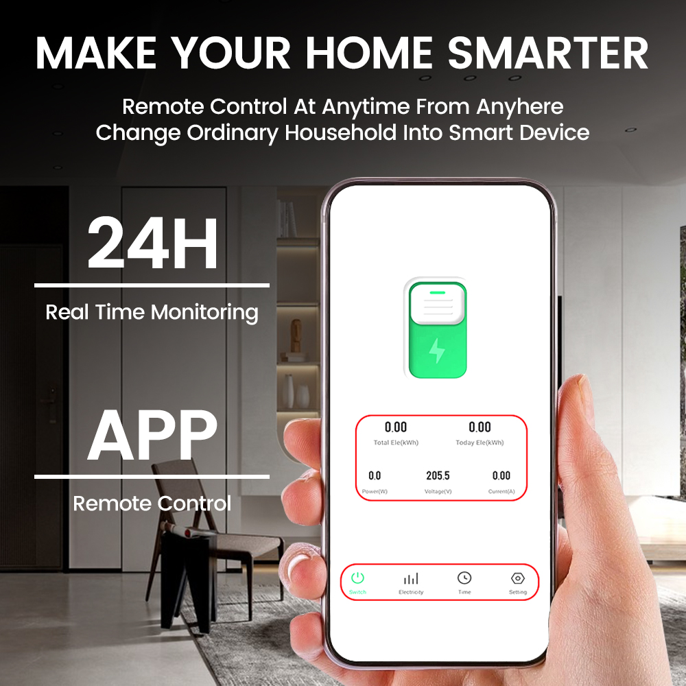 1.Multiple Functions: Set the on/off status of devices in different scenarios and remotely monitor the real-time status of loaded appliances.