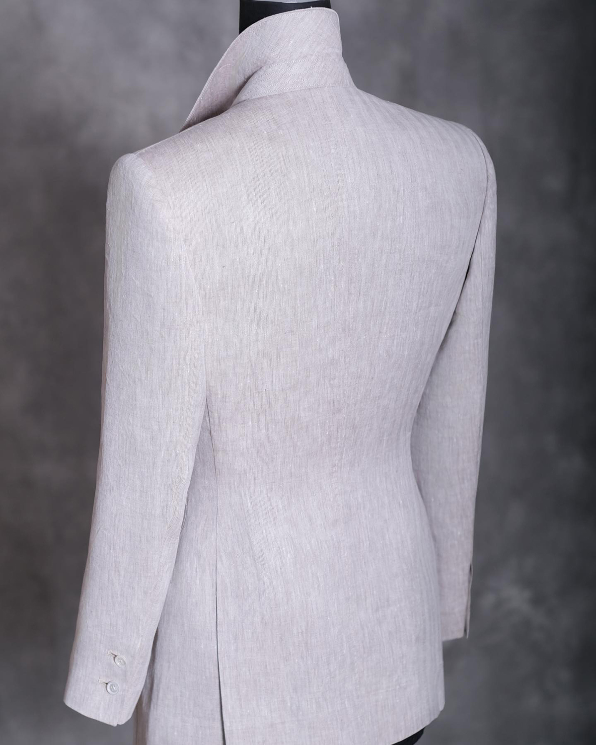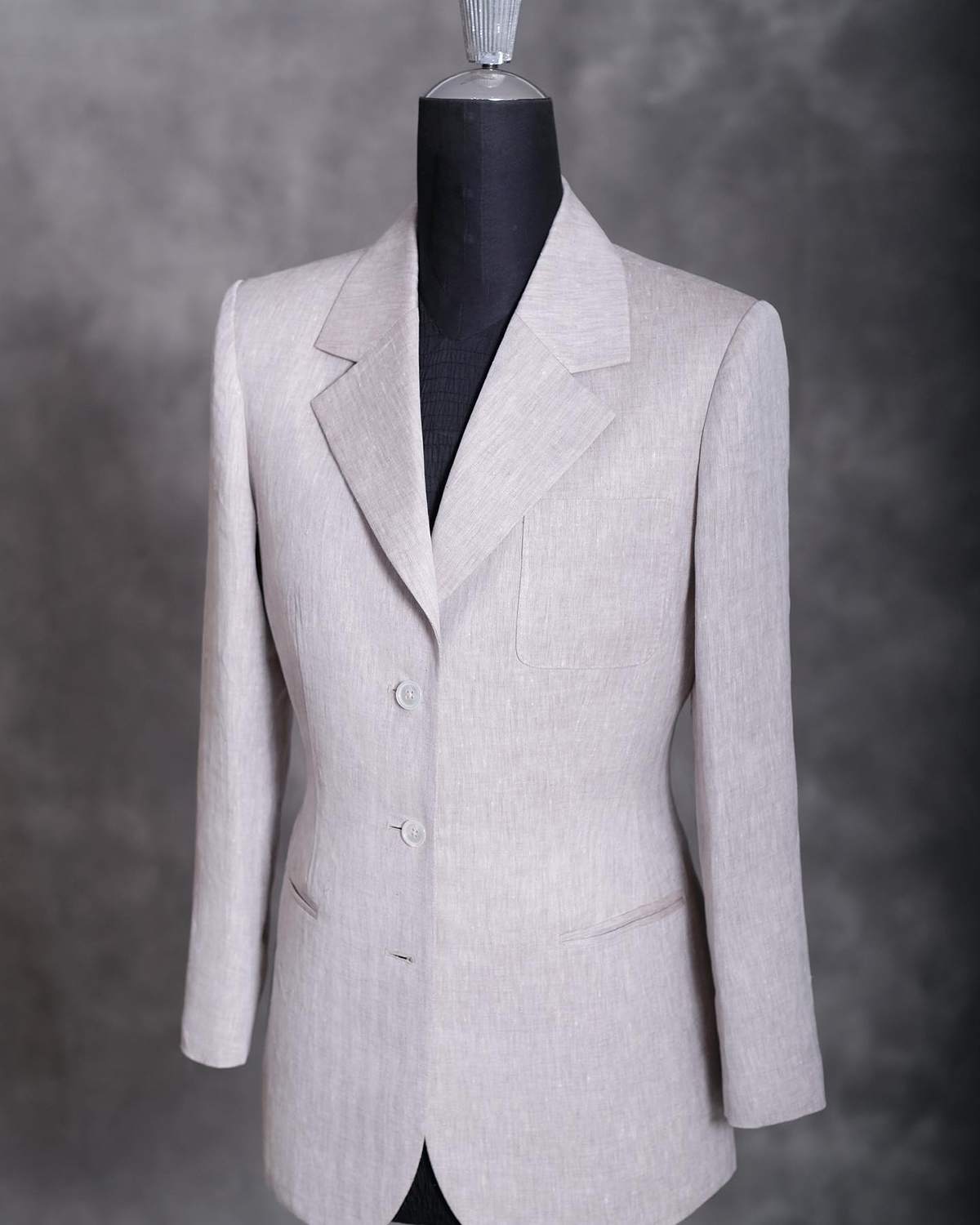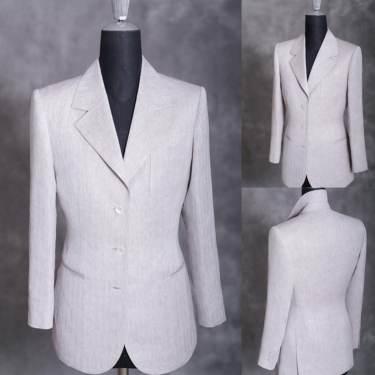Women Office Linen Suit Jacket Wide Notch Lapel Single Breasted Business Formal