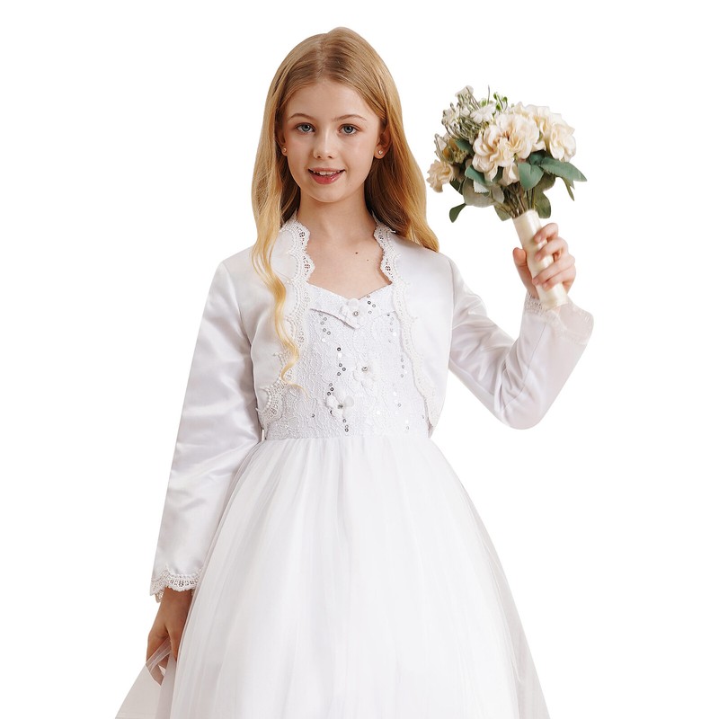 Kids Girls Outerwear Eyelash Lace Trim Tops Princess Shawl Satin Cardigan Party