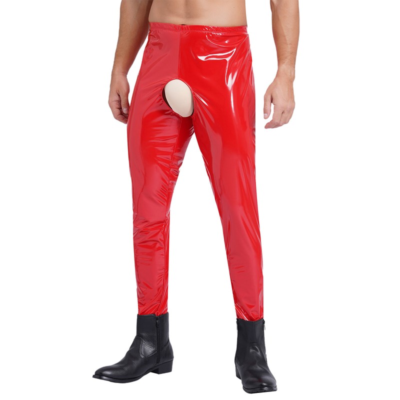 Patent leather leggings are designed with high waist, elastic waistband, crotchless, slim fit and solid color, which is a stylish pants for men.