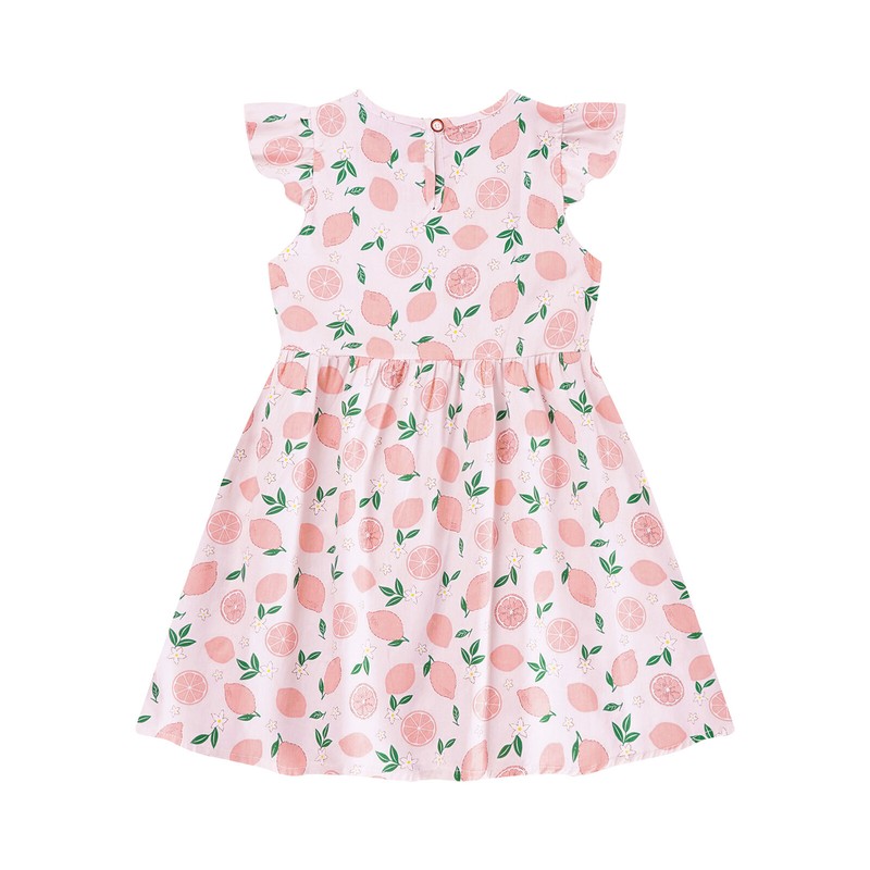 Cap sleeve dress with floral print and ruffled details make your girl look cute and energetic.