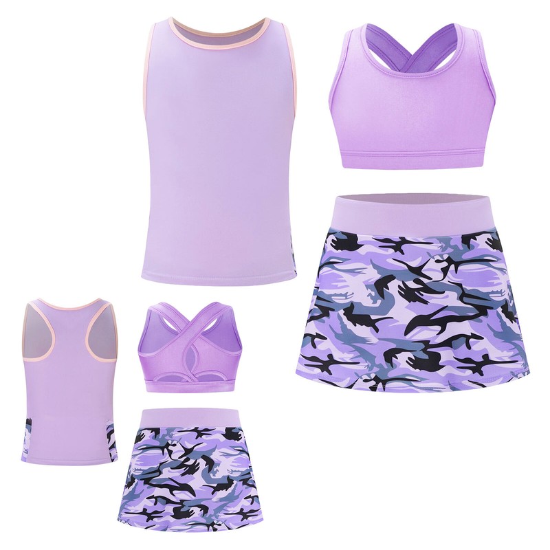 Girl’s crop top with shoulder straps cross at back, elastic hem prevents bounce and ride up.