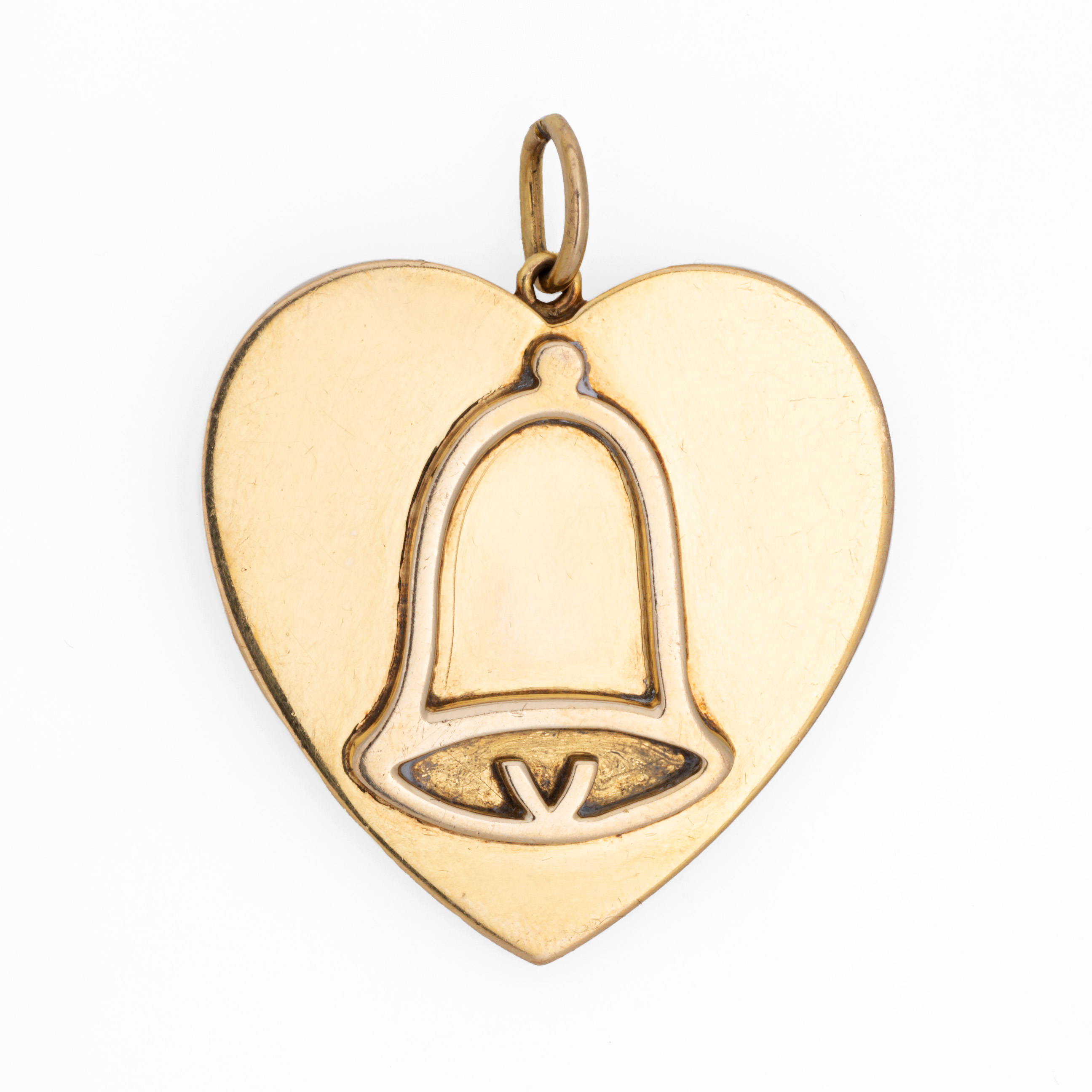 c1976 Vintage Heart Wedding Bell Pendant Large Charm 9k Gold UK Hallmarks