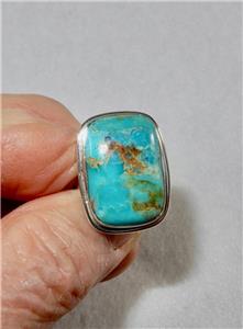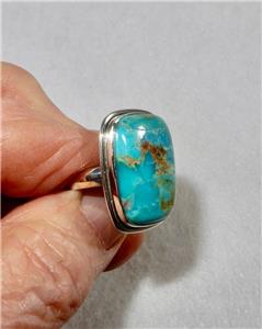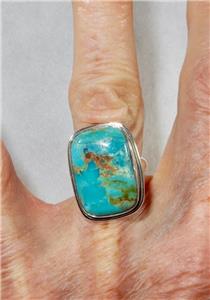 This gorgeous Kingman Turquoise Ring is set in 925 sterling silver. The stone measures 3/4 inches (19 mm) long and 1/2 inches (13 mm) wide. It is a size 7.