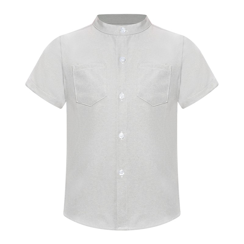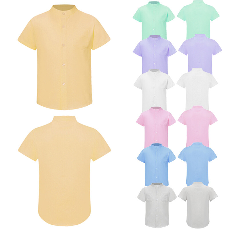 This short sleeve shirt is designed with stand collar, makes your little boy look cute and handsome.