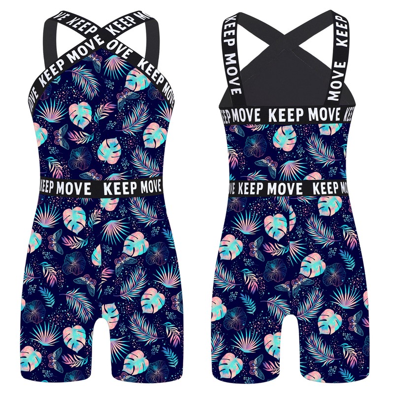 Adorned with letters printed elastic band at shoulder and waist, vibrant print makes girls look active and beautiful.