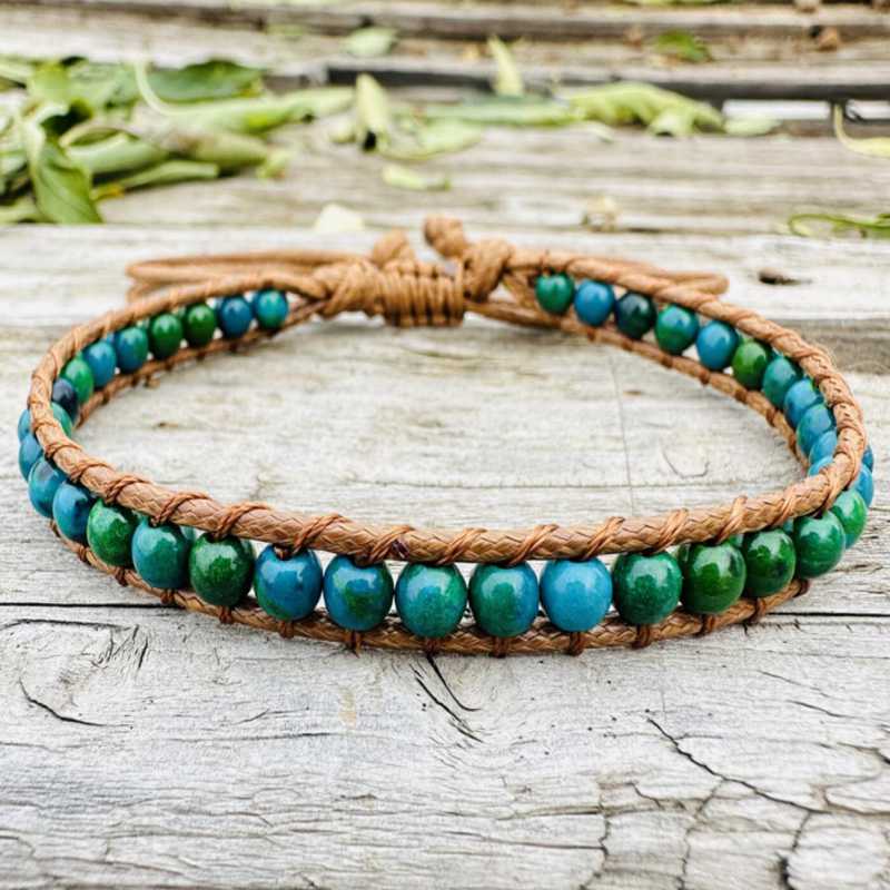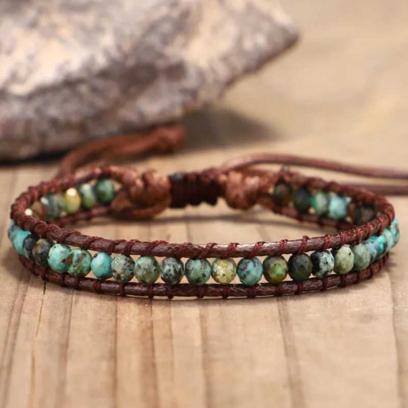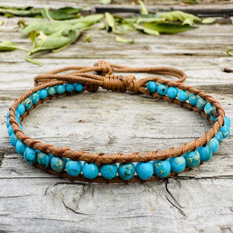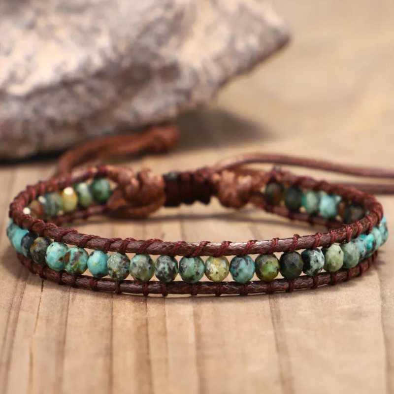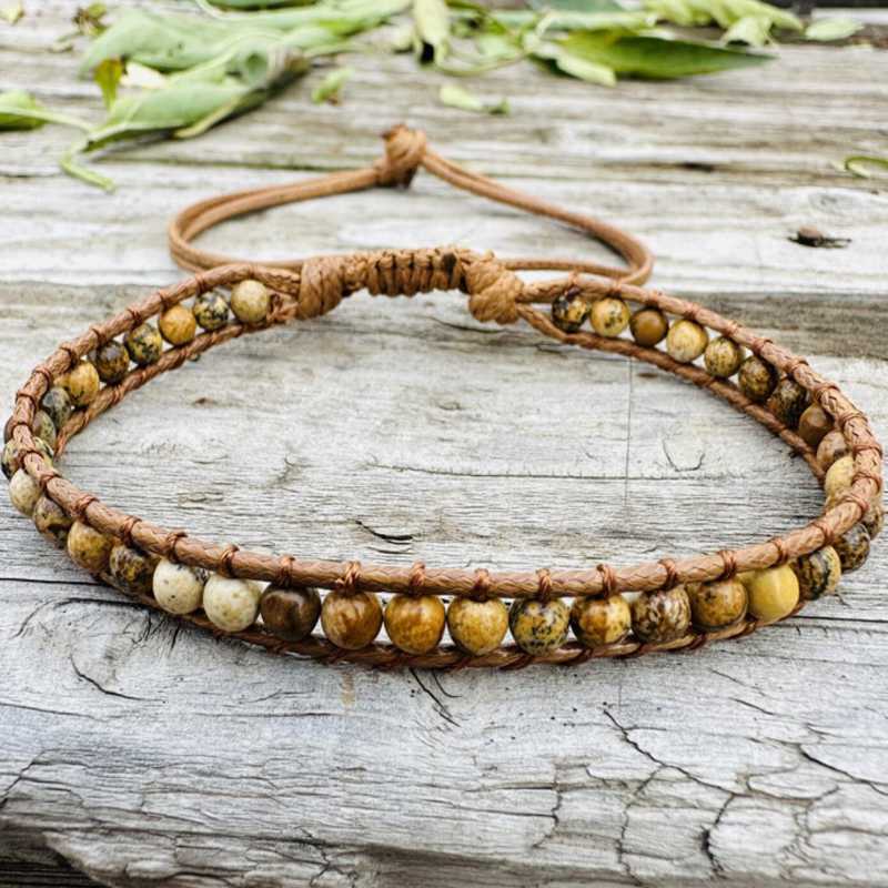 Material: Hand-made 6MM natural stone bead cowhide rope braided bracelet