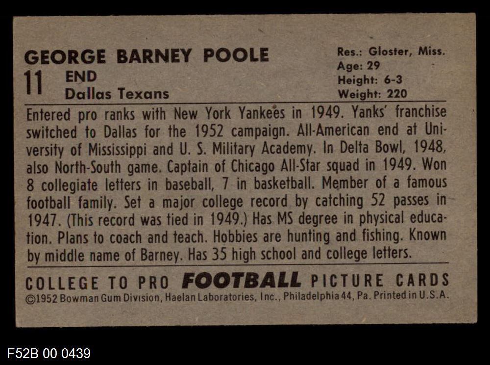 | 1952 Bowman Large #11 Barney Poole | 4 - VG/EX | Front | Back |