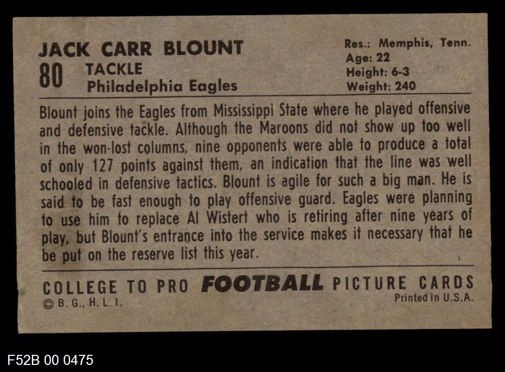 | 1952 Bowman Large #80 John Blount | 5 - EX | Front | Back |