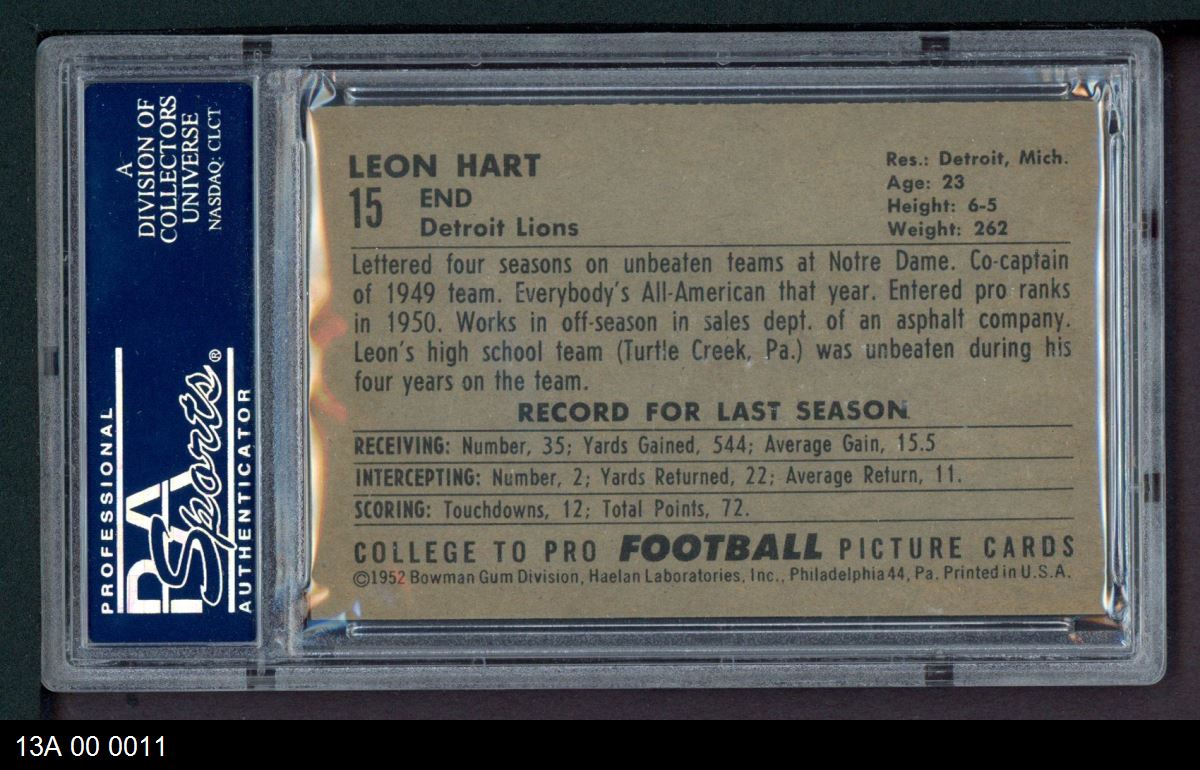 | 1952 Bowman Large #15 Leon Hart | PSA 7 - NM | Front | Back |