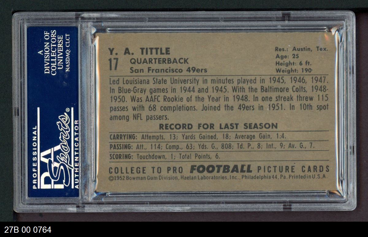 | 1952 Bowman Large #17 Y.A. Tittle | PSA 6 - EX/MT | Front | Back |