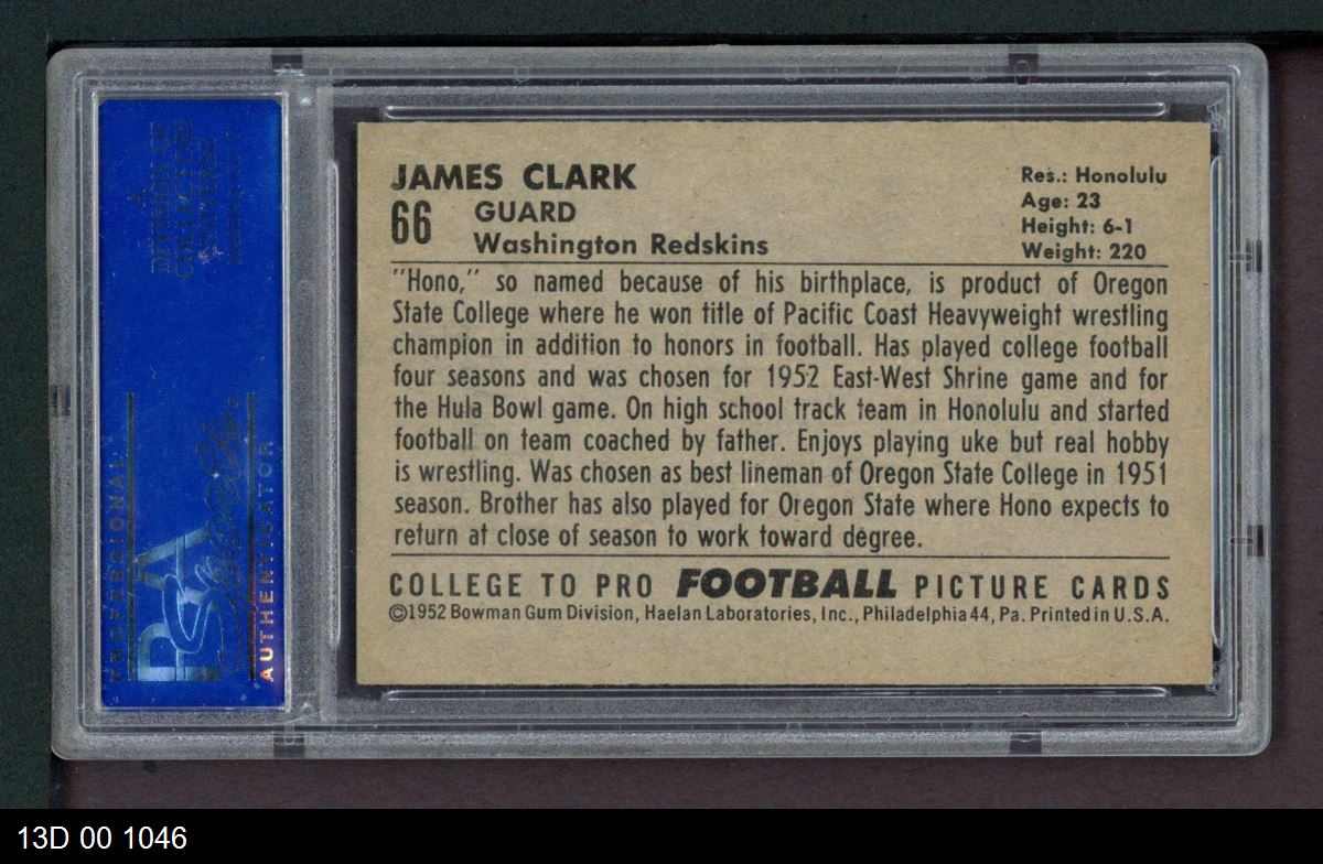 | 1952 Bowman Large #66 James Clark | PSA 6 - EX/MT | Front | Back |