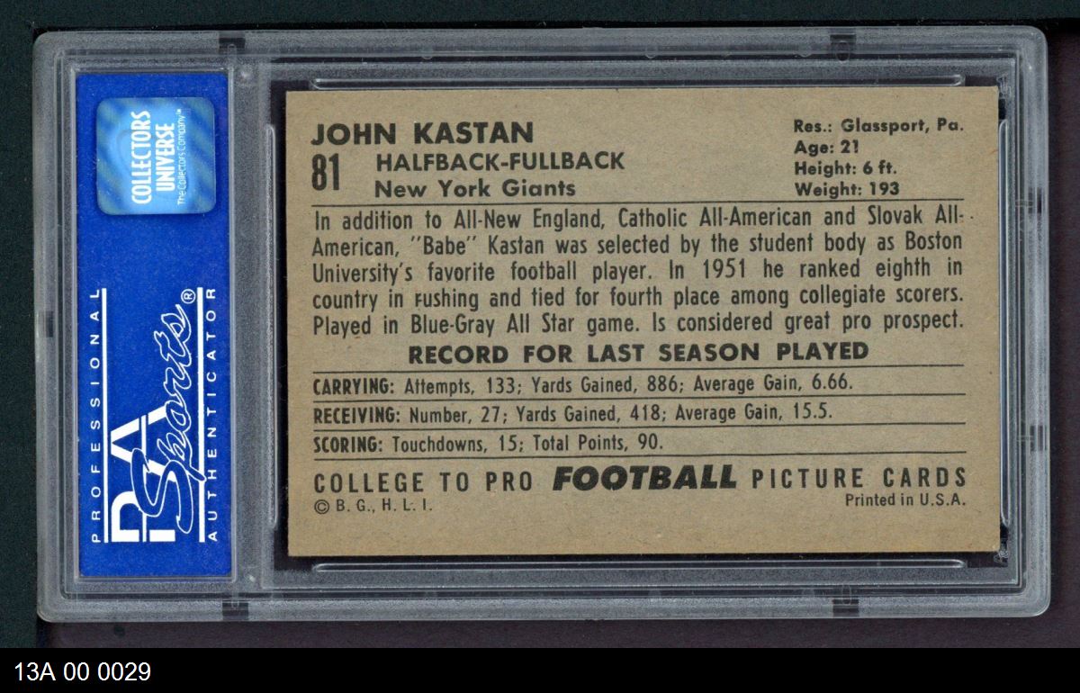 | 1952 Bowman Large #81 John Kastan | PSA 6 - EX/MT | Front | Back |
