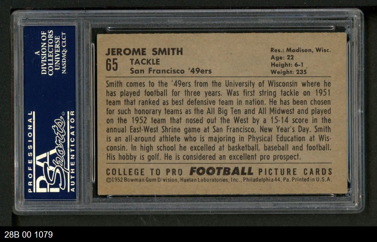 | 1952 Bowman Large #65 Jerome Smith | PSA 6 - EX/MT | Front | Back |