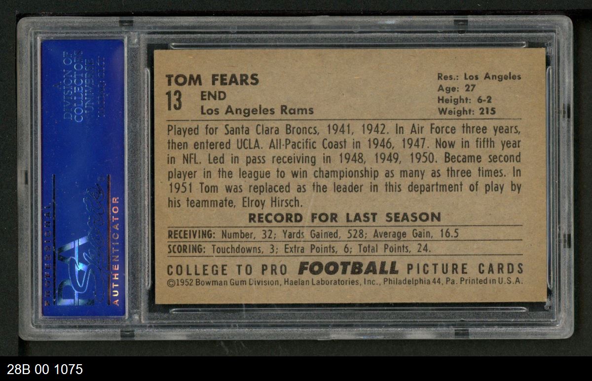 | 1952 Bowman Large #13 Tom Fears | PSA 6 - EX/MT | Front | Back |