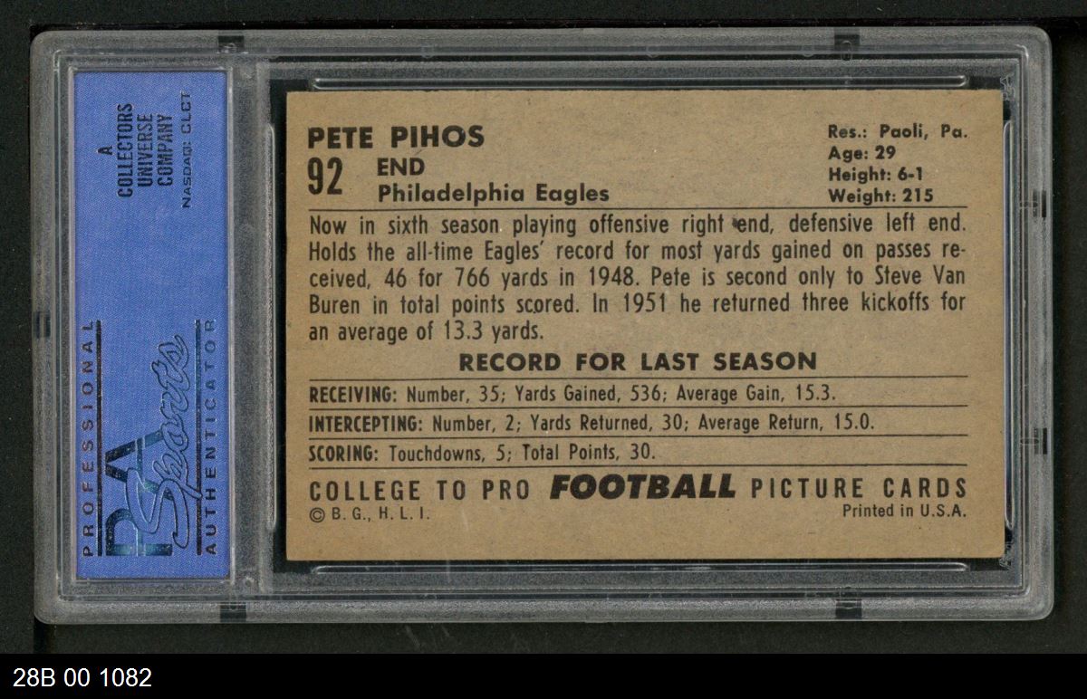 | 1952 Bowman Large #92 Pete Pihos | PSA 6 - EX/MT | Front | Back |