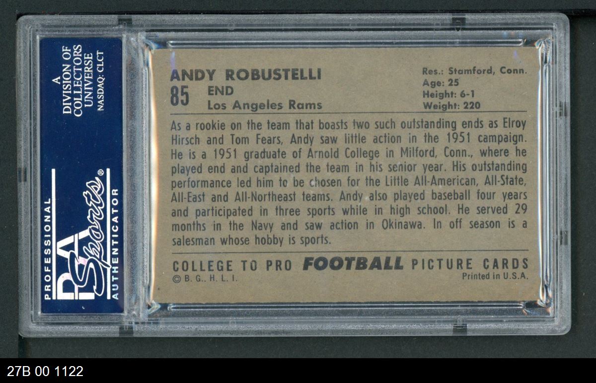 | 1952 Bowman Large #85 Andy Robustelli | PSA 6 - EX/MT | Front | Back |