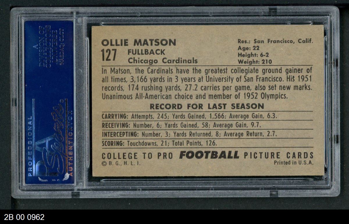 | 1952 Bowman Large #127 Ollie Matson | PSA 5 - EX | Front | Back |