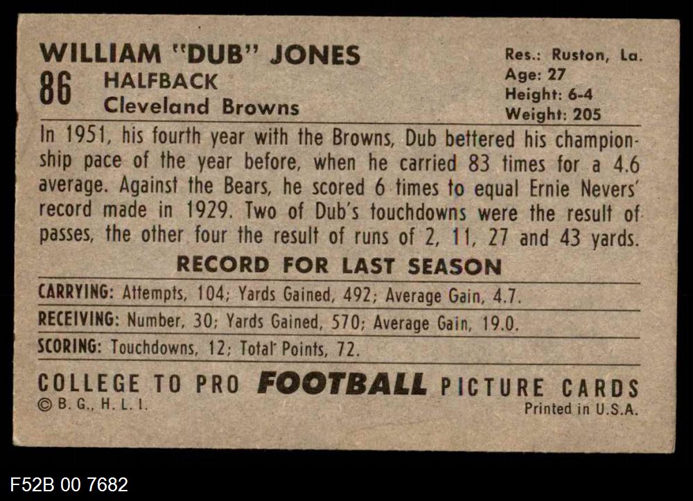 | 1952 Bowman Large #86 Dub Jones | 5 - EX | Front | Back |