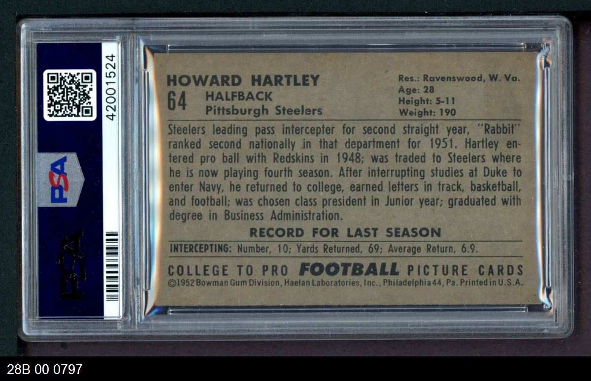 | 1952 Bowman Large #64 Howard Hartley | PSA 6 - EX/MT | Front | Back |