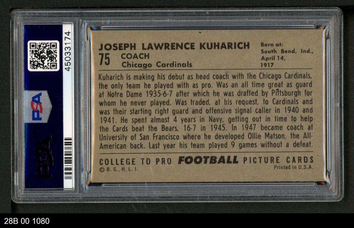 | 1952 Bowman Large #75 Joe Kuharich | PSA 7 - NM | Front | Back |