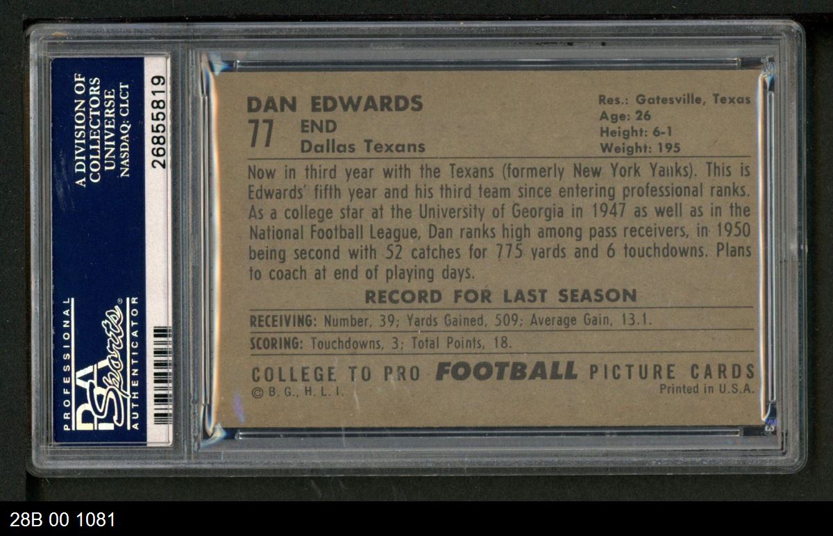 | 1952 Bowman Large #77 Dan Edwards | PSA 6 - EX/MT | Front | Back |