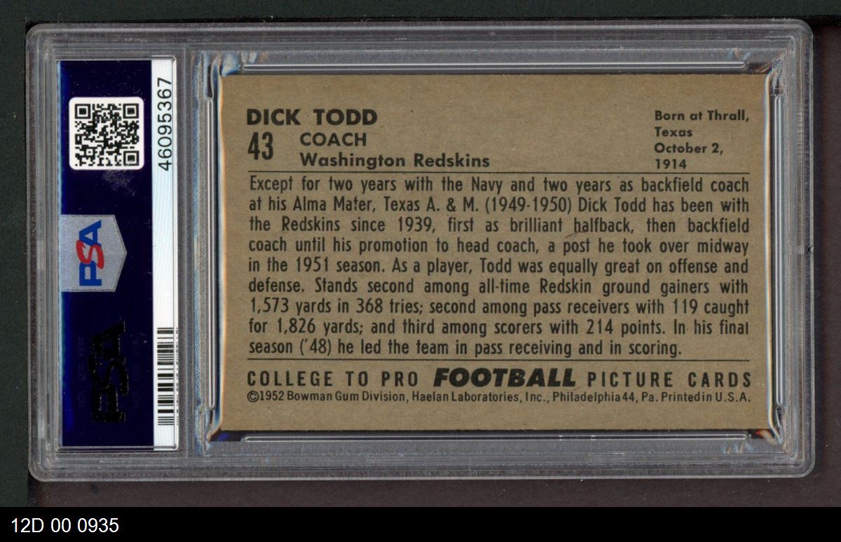 | 1952 Bowman Large #43 Dick Todd | PSA 6 - EX/MT | Front | Back |