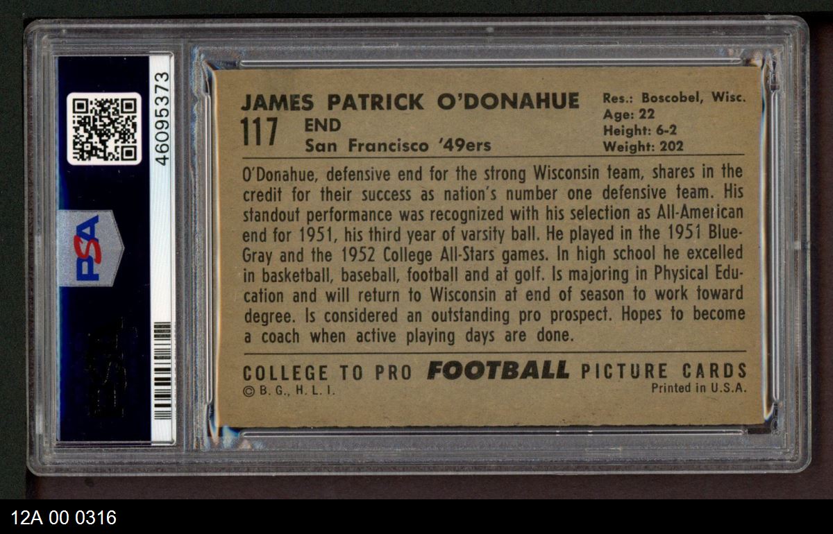 | 1952 Bowman Large #117 Pat O'Donahue | PSA 6 - EX/MT | Front | Back |