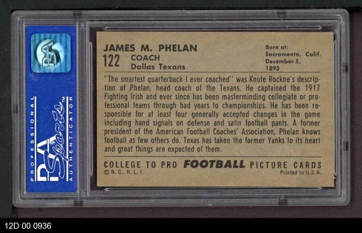 | 1952 Bowman Large #122 James Phelan | PSA 7 - NM | Front | Back |