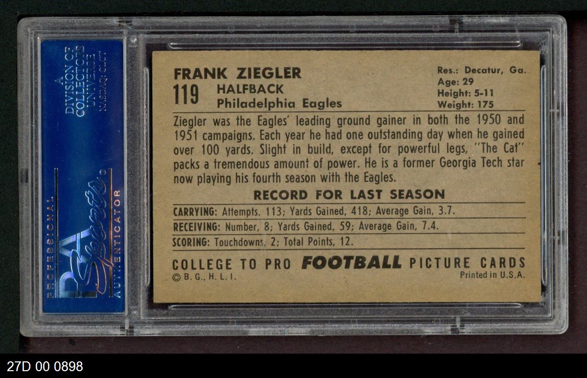 | 1952 Bowman Large #119 Frank Ziegler | PSA 7 - NM | Front | Back |
