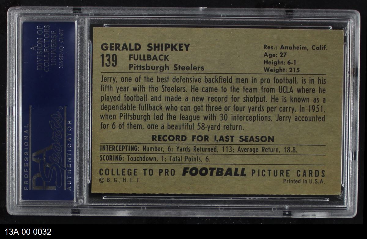 | 1952 Bowman Large #139 Jerry Shipkey | PSA 6 - EX/MT | Front | Back |